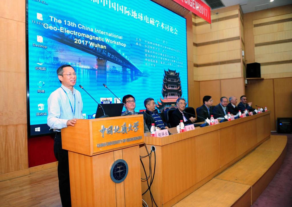 唐辉明介绍了学校建设地球科学领域世界一流大学的发展规划,阐述了本次地球电磁物理学术会议召开的背景和意义。他认为,此次会议为国内外学者提供了展示地球电磁学最新研究成果、探讨学科发展新思路的交流平台。