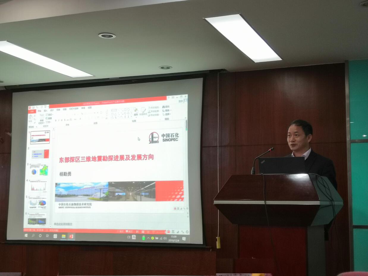 12月4日下午,应德赢官网熊熊院长与顾汉明教授邀请,德赢官网杰出校友、客座教授、中国石油化工股份有限公司石油物探技术研究院杨勤勇院长来德赢官网访问,并在物探楼222学术报告厅做了“中国东部探区三维地震勘探进展及发展方向”的学术报告,全校从事油气地震勘探方向的师生到场聆听讲座。