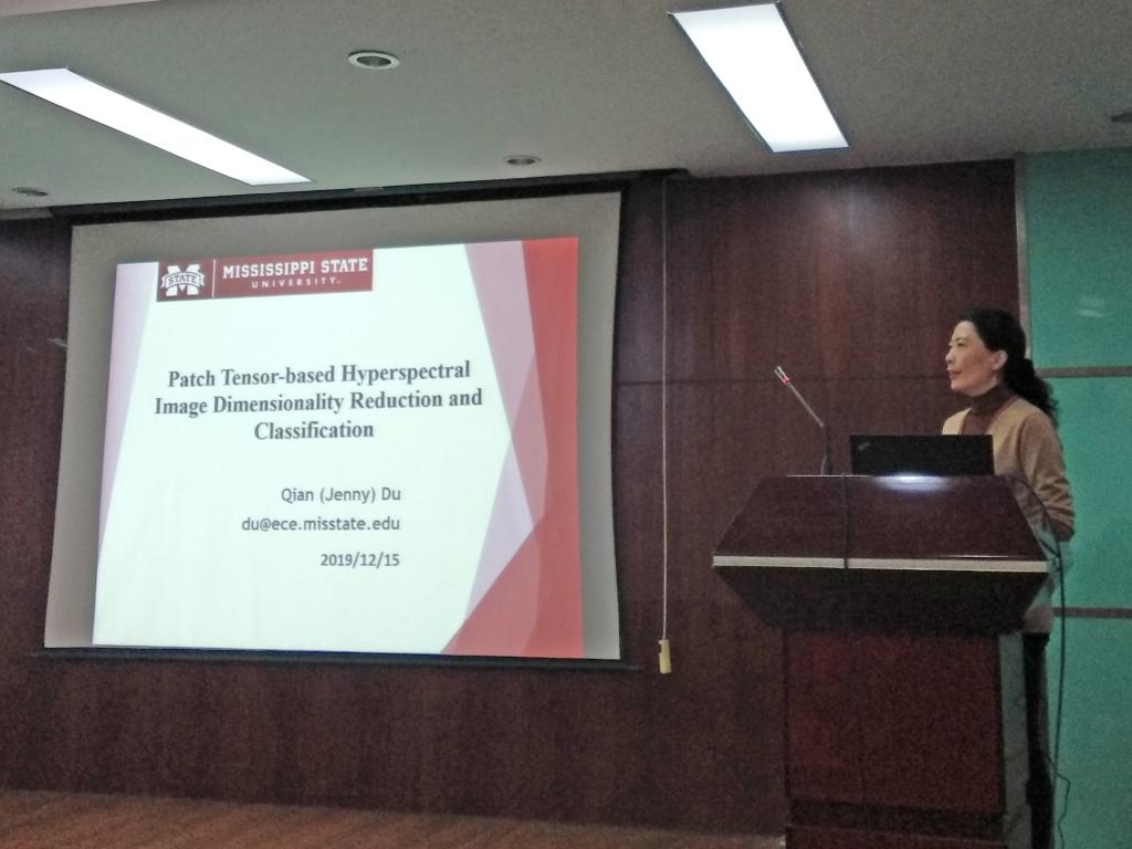 (通讯员 刘慧泽)12月16日下午,应德赢官网熊熊院长与吴柯副院长邀请,美国密西西比州立大学电子与计算机工程学院Qian Du教授做客德赢官网,并在物探楼222学术报告厅做了“Patch Tensor-based Hyperspectral Image Dimensionality Reduction and Classification”的学术报告,全校40多位师生到场聆听讲座。