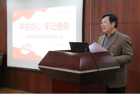 最后,李周波副书记作大会总结发言。他指出,主题教育是一次深刻的思想政治洗礼,将守初心担使命作为终身课题、毕生追求,牢固树立“四个意识”,坚定“四个自信”,做到“两个维护”,以更加昂扬的斗志,推进学院高质量发展。