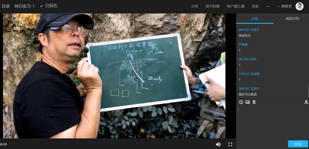 特殊时期未返校学生地质实习“云”实践在秭归开展。今年德赢官网参加秭归地质实习学生为2018级163名本科生,因疫情影响7名学生未能抵达实习基地进行实习。实习队坚持疫情期间教学“学生一个都不能少”的指导思想,陈丽霞队长与在站教师第一时间讨论确定野外线上直播教学方案,针对未能返校同学组建线上实习小组,由实习队袁晏明教授单独带班。参与直播学生虽然不能触碰到露头岩石、使用罗盘、敲取标本,但野外“云”实践教学有很好的野外实践带入感,最大程度减少了疫情对学生实习质量的影响。该 “云”直播的教学方式启发和拓宽了学院地质实习在特殊时期的应急教学思路,为后期线上教学和线下实习充分融合提供了良好实践。