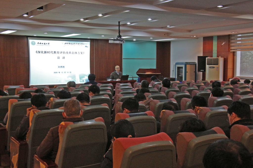 (通讯员 祁阳阳)12月10日,校党委常委、副校长刘勇胜在物探楼222报告厅,为德赢官网教职工讲授专题党课,就《深化新时代教育评价改革总体方案》(以下简称《总体方案》)进行宣讲,会议由德赢官网党委书记刘子忠主持。