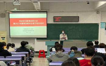 与会人员首先集中观看了新闻联播视频,集体学习了习近平总书记在党史学习教育动员大会上的重要讲话精神。姜明敏副书记传达了学校党史学习教育动员大会精神和学校党委黄晓玫书记、王林清副书记等领导讲话要求,简要介绍了学院党史学习教育的计划安排,并进行党史学习教育动员。他对全院学生骨干提出三点要求:一是思想上重视起来,变“要我学”为“我要学”;二是行动上落实下来,改“磨洋工”为“钉钉子”;三是效果上显现出来,转“走过场”为“真成长”。希望党员带头、党团班全覆盖,结合建党100周年契机,认真研读党史,树立专业自信,学史明理、学史增信、学史崇德、学史力行。