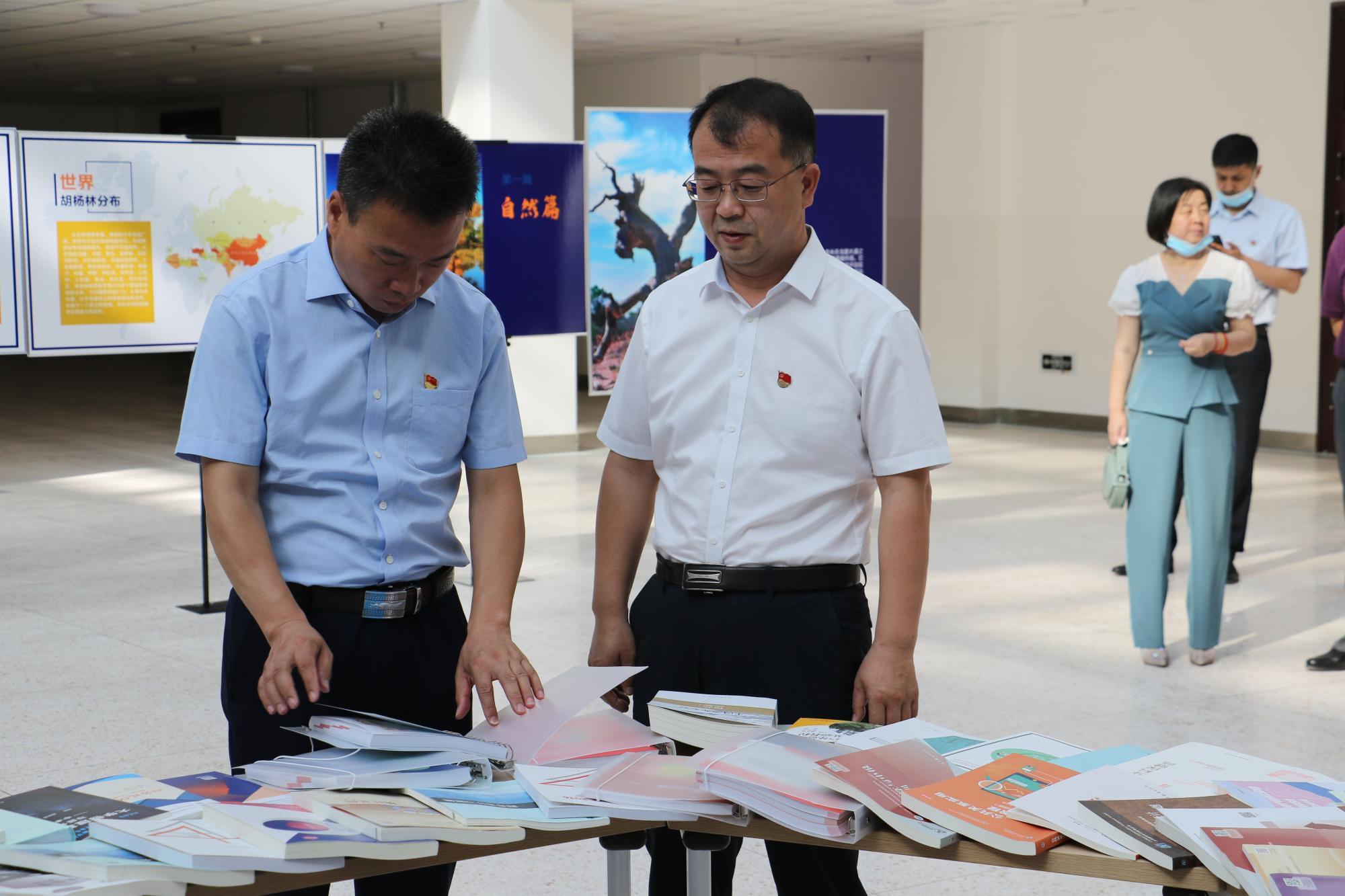 学院党委书记、副院长王瀚、学院党委副书记、院长何朴参观了本次主题展,支部书记叶剑锋向参展的教职工介绍了支部在党建品牌建设、胡杨文化宣贯、彰显支部特色、提升支部凝聚力等方面的新思路、新举措和新成绩,并详细介绍讲解了主题展的内容。在一幅幅展板前,参展的教职工认真听讲,仔细研读,通过了解胡杨文化,感受扎根边疆、兴疆固边的精神。