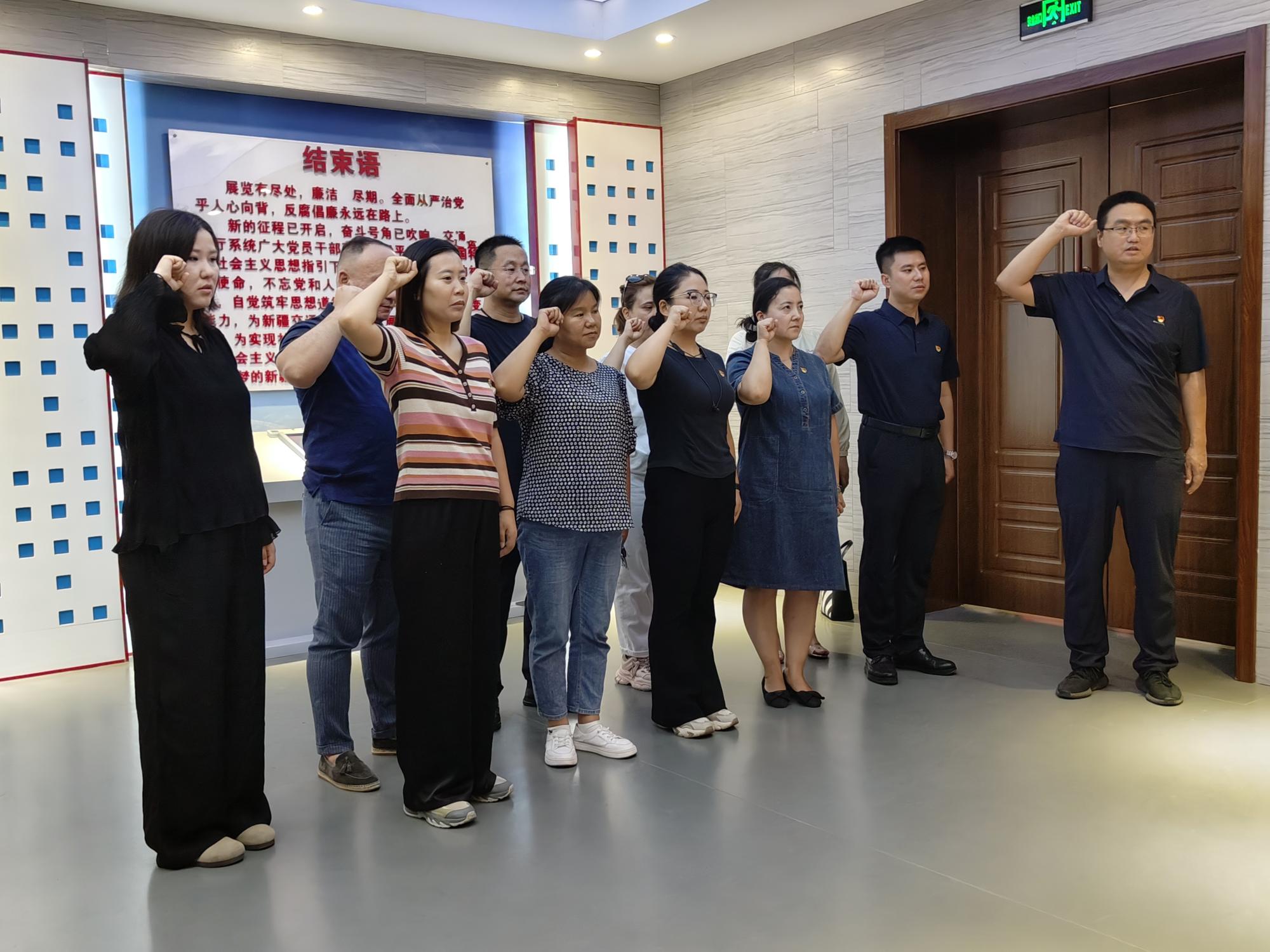 参观结束后,在道路桥梁工程学院党总支副书记、院长曹永鹏同志的带领下,全体党员同志齐聚于宣誓墙前,面对鲜艳的党旗,以饱满的热情和坚定的信念,重温入党誓词。铿锵有力的誓言,表达了党员们对党的忠诚以及坚守廉洁自律底线、永葆共产党人政治本色的坚定决心。