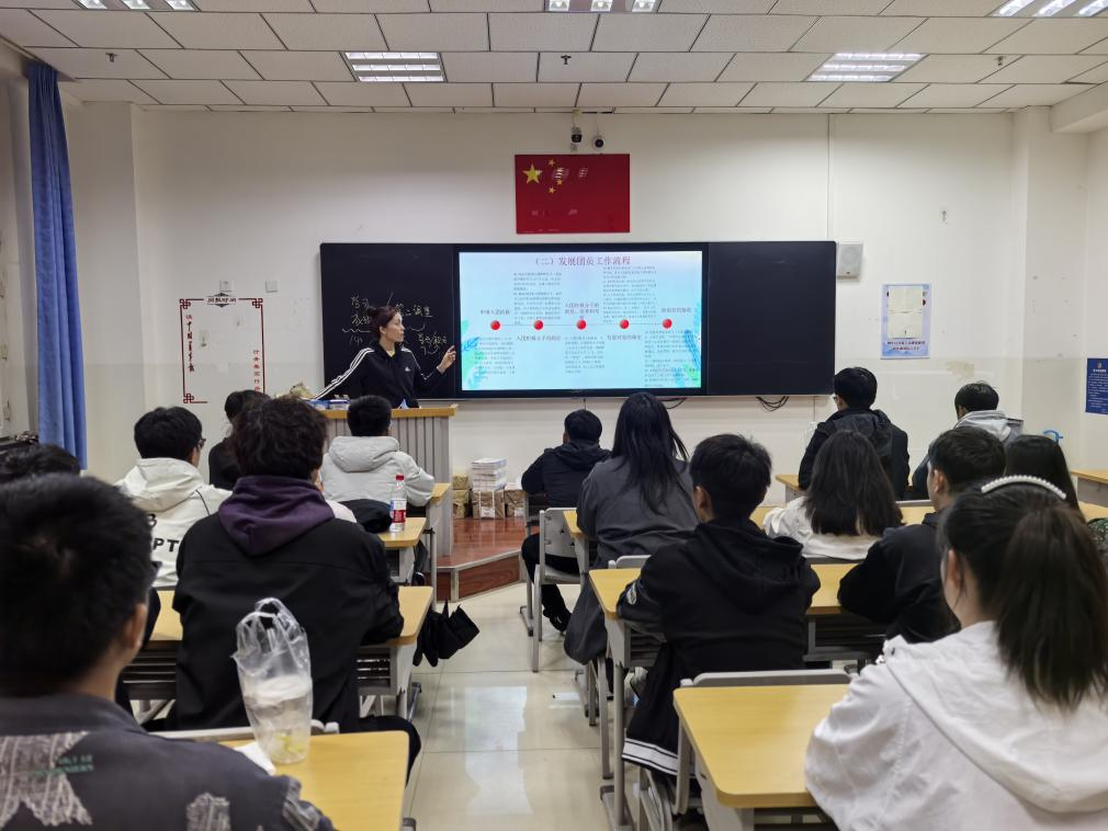入党宣讲以“入党流程与理想信念教育”为核心,由学生党支部优秀成员围绕自身入党经历、专业学习与学生工作经历,分享了自己在志愿服务中的成长故事,用真实案例激发了同学们向党组织靠拢的热情。