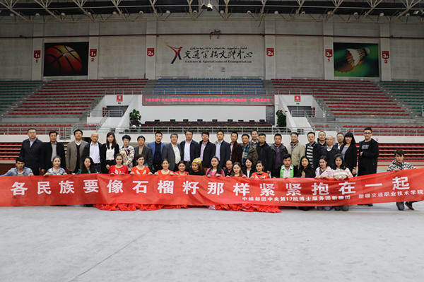 座谈会后,学院领导陪同博士服务团一同参观了学院汽车大工间、电梯实验室、道桥土木实训中心等实训场地,博士团代表对学院实验实训条件和校园建设予以了赞扬。在文体中心,由学生“麦西来甫社团”组织的别具新疆特色的民族歌舞表演赢得了博士团成员的一致好评,博士团成员与各民族同学一起载歌载舞,了解新疆人文文化,结识不同民族好朋友,谱写民族团结之曲,立下 “像石榴籽那样紧紧抱在一起”的庄严承诺。学生们看见博士代表团的博士们不仅才华横溢而且年轻富有朝气,崇拜之情溢于言表,都暗自下定决心,要发奋读书,为自己的理想而奋斗!