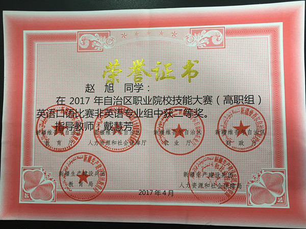 本次大赛为新疆高职高专英语教学搭建了一个探索教学改革、交流教学经验的平台,有力推动了高职院校学生英语口语水平的提高,我院将以此次大赛为契机,“以赛促进、以赛促学、以赛促改”,继续扩展、夯实学生英语基础知识和基本技能,推动我院大学英语及专业英语教学再上一个新台阶。
