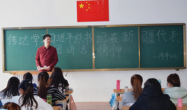 为深入学习和贯彻落实习近平总书记在参加十二届全国人大五次会议新疆代表团审议时的重要讲话精神,连日来,分院师生通过观看中央电视台新闻联播中关于习近平总书记参加新疆代表团审议的视频资料和学习报道等资料进行学习。并在本周学生团课前召开了班主任例会,进一步学习了习近平总书记的重要讲话精神,大家纷纷表示深受鼓舞,感受到了党和国家对于新疆工作的高度重视。