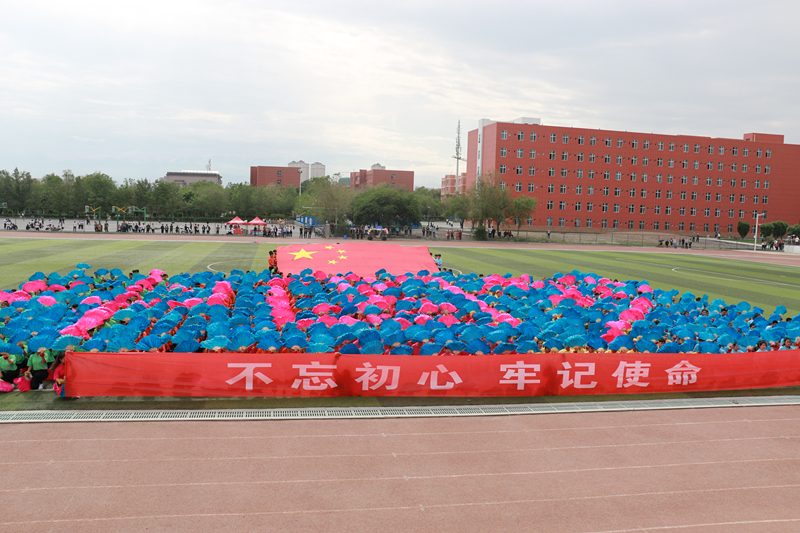开幕式上,由来自全院一千名青年学子参加的《激情五月 青春向党》团体操表演是本届运动会的一大亮点。伴随青春激昂的旋律,迎着朝阳,同学们奔向绿茵场地,在一片欢呼声中,彩扇炫舞竞芬芳,热血青春谱华章。通过不断变化队形,分别呈现出“XJJT”、“2018”以及“中国梦”字样,展现着团结、奋进、和谐、发展的运动内涵以及不忘初心、牢记使命为中华民族的伟大复兴不断努力的精神!