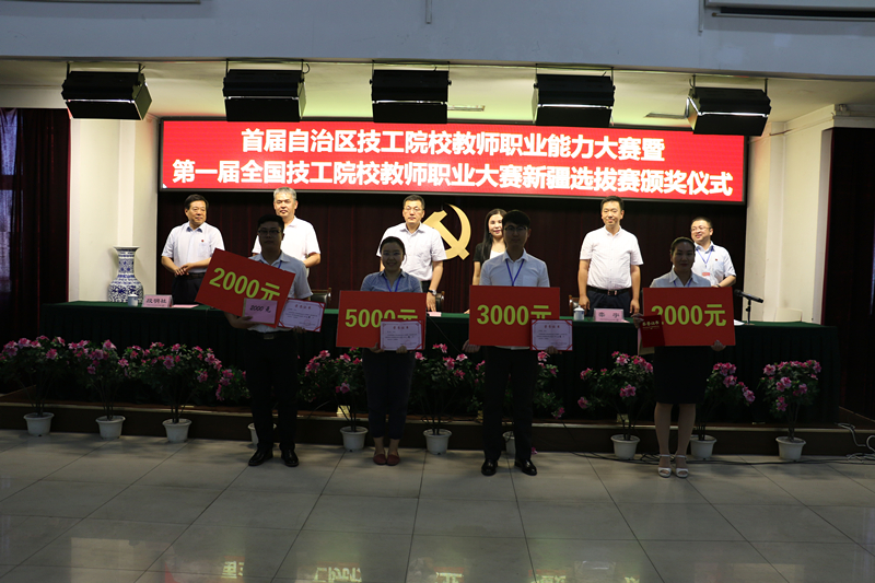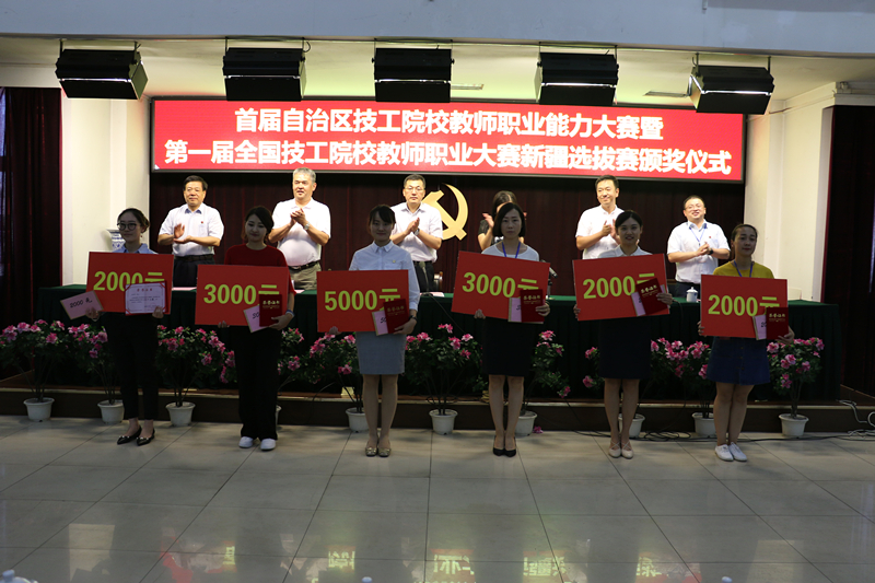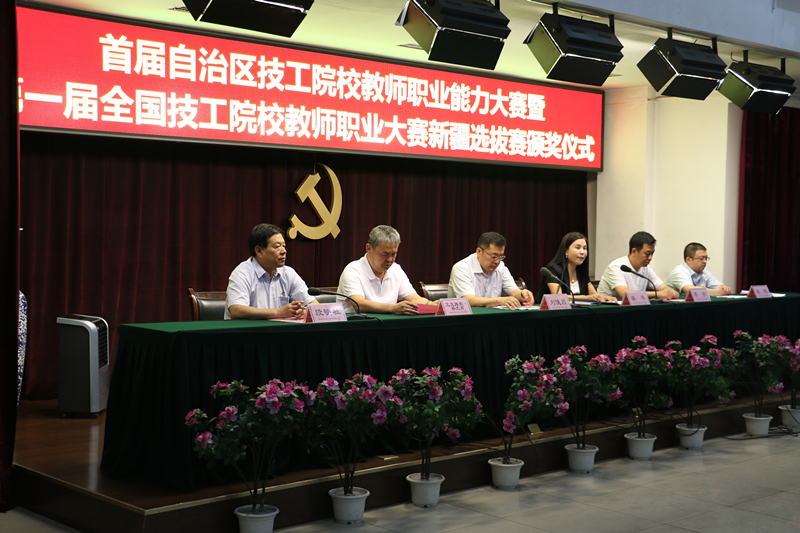 7月6日,由自治区人社厅主办,新疆交通技师培训学院承办的“首届自治区技工院校教师职业能力大赛暨第一届全国技工院校教师职业能力大赛新疆选拔赛”在我院圆满落幕。自治区人社厅副厅长刘俊昌、技工教育指导中心主任梁萍、职业技能鉴定中心主任艾克拜尔·吾尤甫、职业能力建设处副处长栾宇、学院党委副书记、院长段明社、副院长戎成出席了决赛颁奖仪式。
