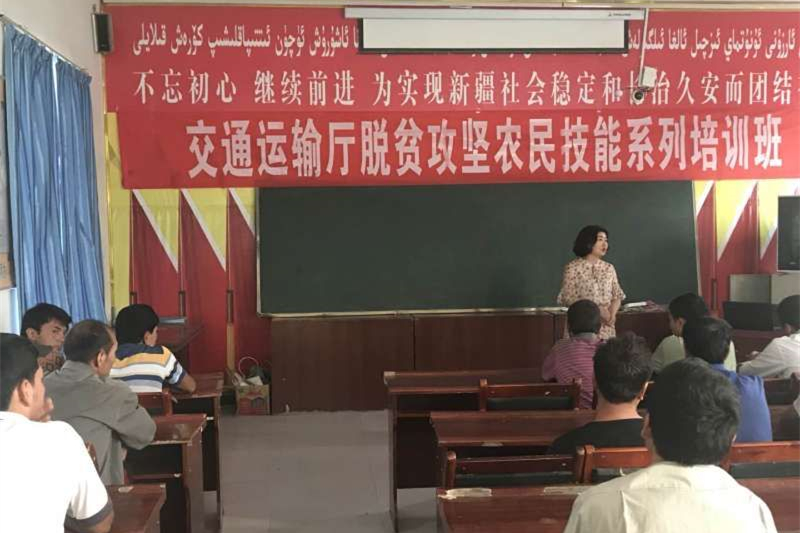 学院于7月10日-8月9日在岳普湖县和英吉沙县开展第一轮脱贫攻坚技能培训工作。公路养护技术培训是根据交通运输厅农民工转移就业脱贫的要求组织实施,培训内容主要从职业素质教育、专业基础基础知识、日常养护内容、日常护路执法等五个模块进行培训。岳普湖县培训点主要分为岳普湖乡、铁热木镇、也克先拜巴扎镇三个片区,为了方便当地农民就近参加学习,每个片区均设置一个培训点,时间从7月17日开始至7月22日为期6天,培训人员近百人。