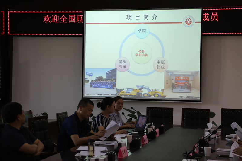 汇报会上,汽车运用与维修技术、工程机械运用技术两个现代学徒制试点专业负责教师董静、罗江红分别从试点任务完成情况、工作成效及创新点、资金到位和执行情况、存在问题及改进措施及下一步工作思路等五个方面向专家组做了专题汇报。