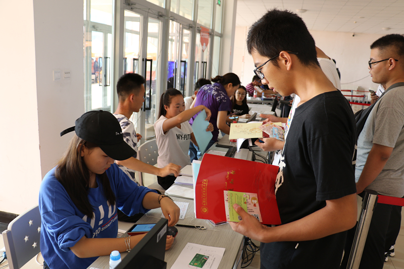 为做好2018年迎新工作,确保新生顺利报到,学院党委高度重视新生接待工作,对每个环节都进行了周密部署。8月26日上午,学院团委学生处、财务计划处、后勤服务中心、图文信息中心等相关部门工作人员提前到场,进行网络布线、调试、桌椅摆放、流程指示图张贴等准备工作。