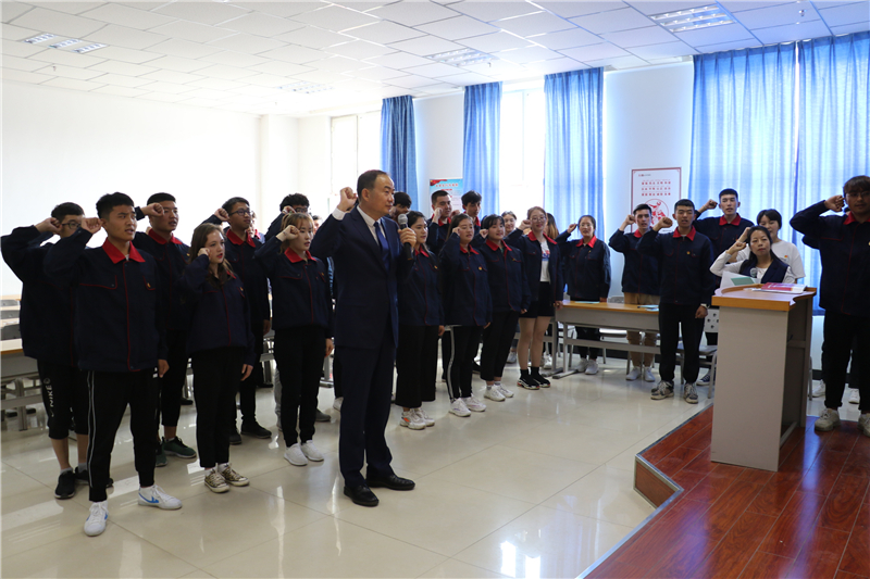 正值自治区第35个民族团结教育月之际,5月31日,自治区交通运输厅党委书记李学东来到新疆交通职业技术学院,看望结对子好朋友——造价D181班的阿里木·艾散、艾克热木·吐尔贡,并与各族师生共同开展了主题为“初心”团日活动。主题团日由班主任陈诗琳主持。