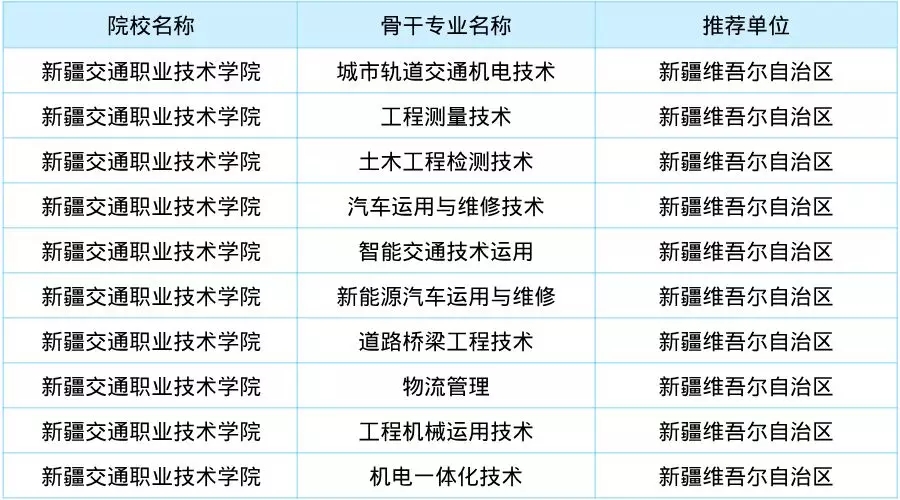 6月10日,教育部职业教育与成人教育司公示《高等职业教育创新发展行动计划(2015-2018年)》项目认定名单,新疆交通职业技术学院入选优质专科高等职业院校认定名单。