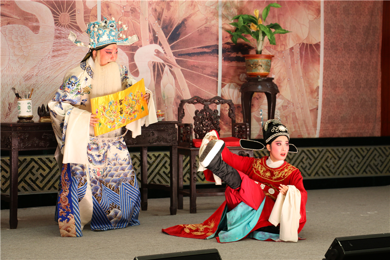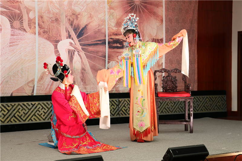 演出前,再芬黄梅艺术剧院的李俊老师对黄梅戏的起源、发展状况、艺术特色以及社会地位作了简要介绍。演出在师生们的热烈掌声中拉开序幕,整场演出分为绣楼、花园、刘府、状元府等六场,演员们俊俏的扮相、动听的唱腔、精湛的表演、精彩的剧情,给现场的师生带来了一场视听的盛宴。