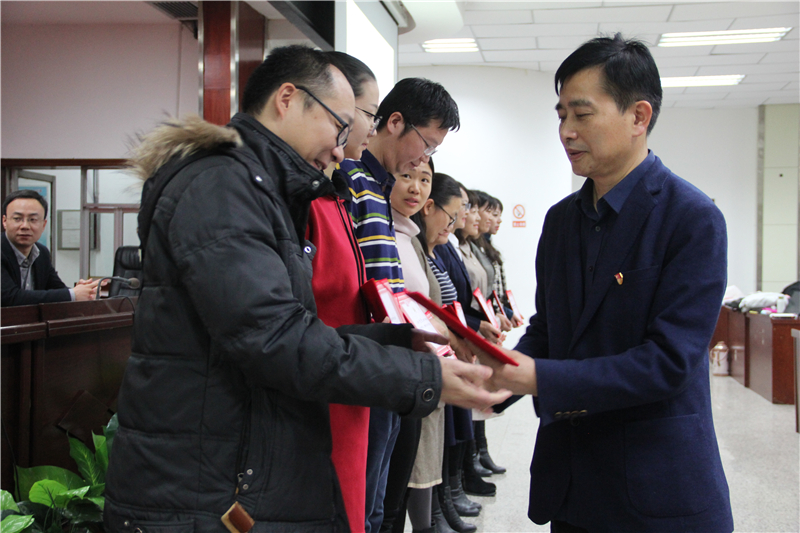 学院教务处处长叶剑锋宣读《关于公布学院2019年度专业负责人、骨干教师遴选结果的通知》,党委委员、副院长唐杰军分别为39位专业负责人、60位骨干教师代表颁发聘书。