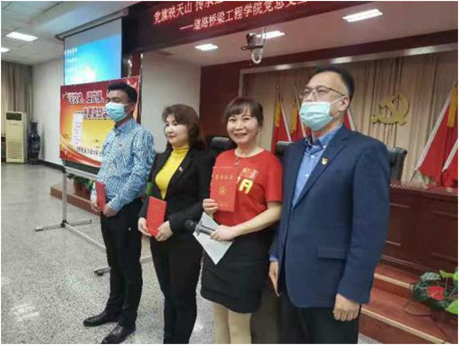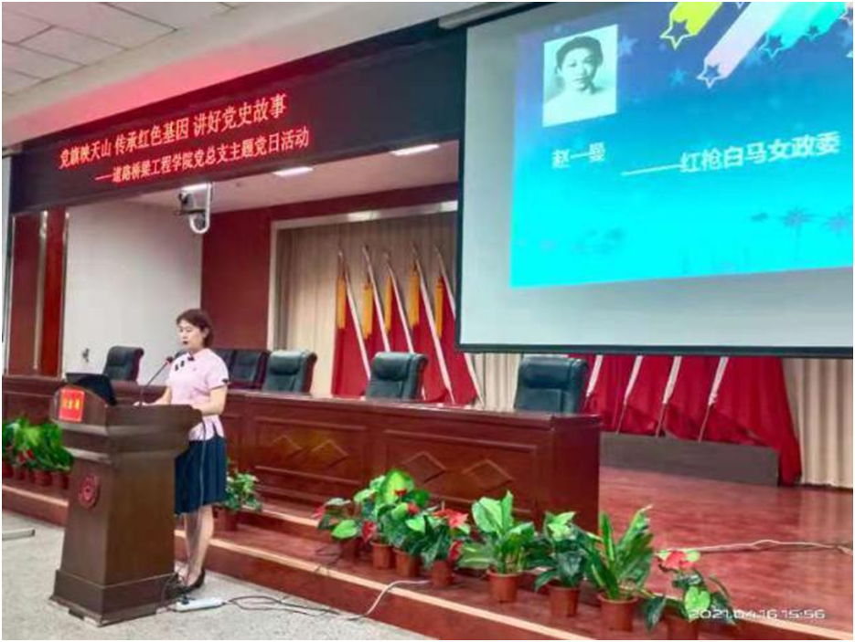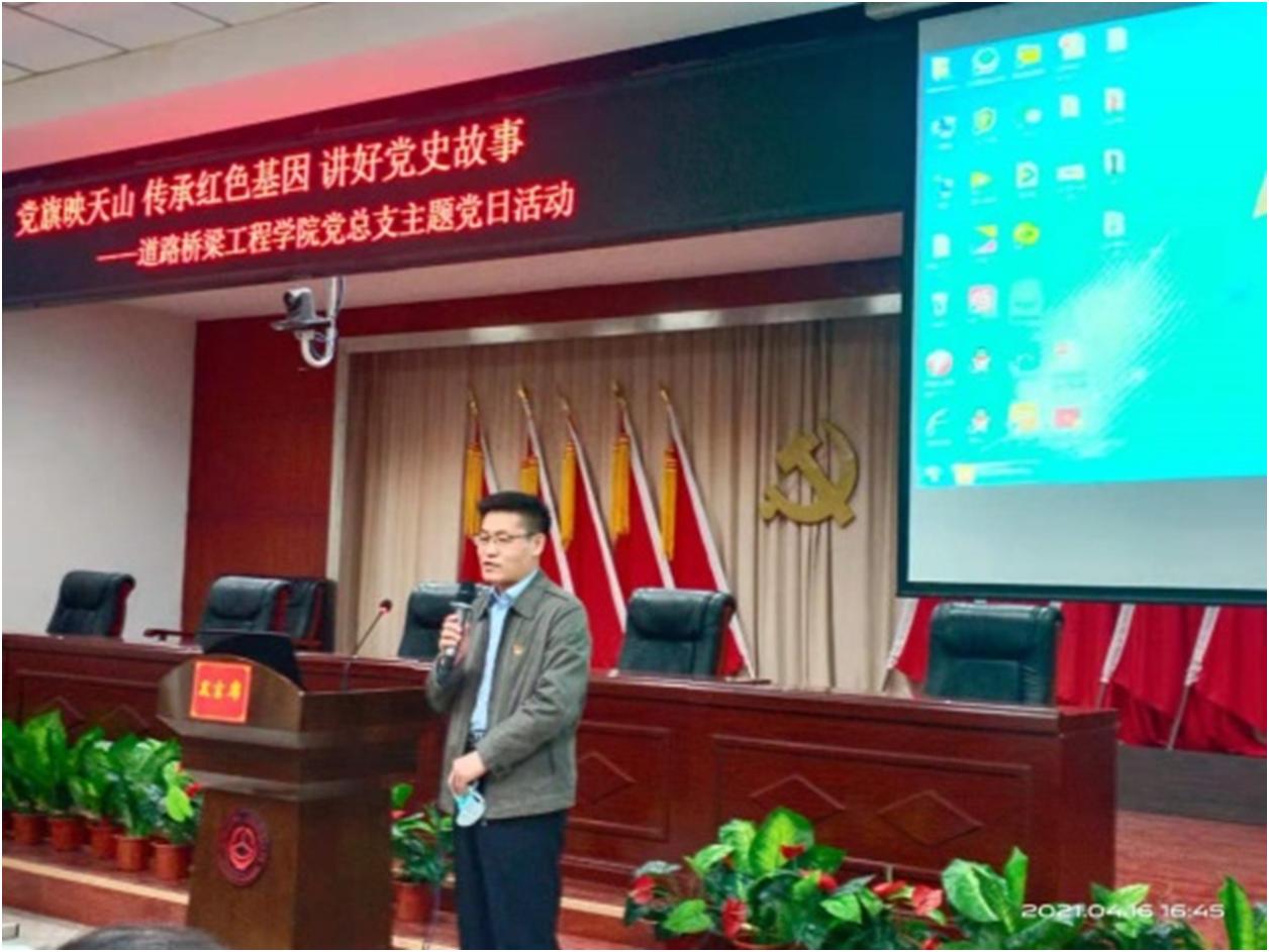 学院党委书记王瀚出席活动并讲话,他说:今年是我们党百年华诞,在这一重大时刻,在“两个一百年”奋斗目标历史交汇的关键节点,在全党集中开展党史学习教育,正当其时,十分必要。并激励全体党员干部在讲党史故事中理清党的历史脉络、把握党的历史规律,进一步增强教职工“四个意识”、坚定“四个自信”、做到“两个维护”,提高政治判断力、政治领悟力、政治执行力,充分发挥好学校在宣传党的思想理论、锤炼党员党性方面的重要作用,为新疆交通教育事业做出应有的贡献。