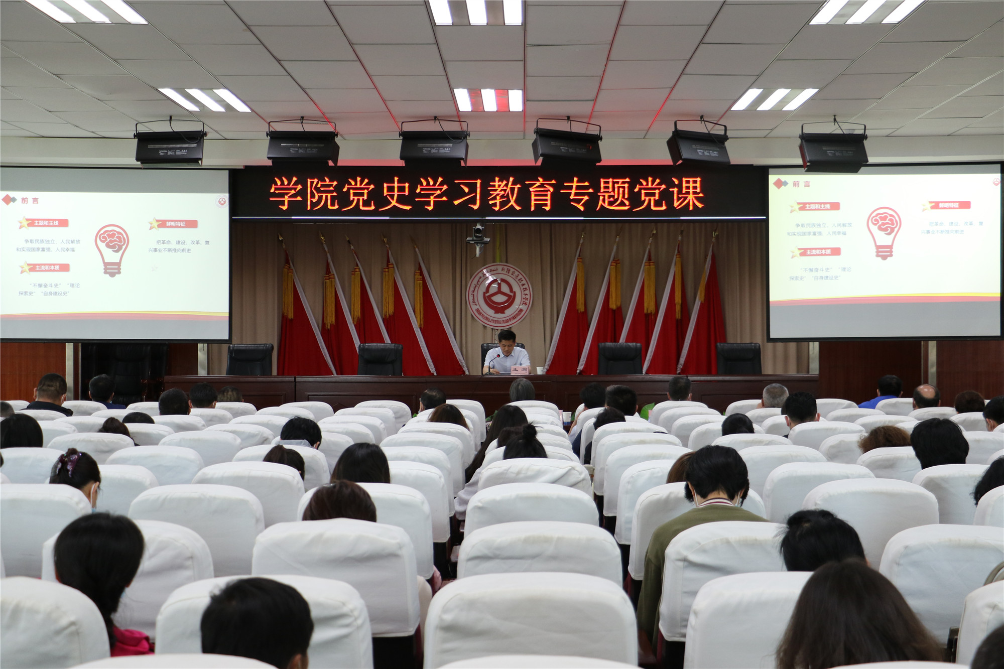 5月21日下午,学院党委书记、副院长王瀚为全院党员以《中国共产党百年辉煌》为题,上了党史学习教育专题党课。