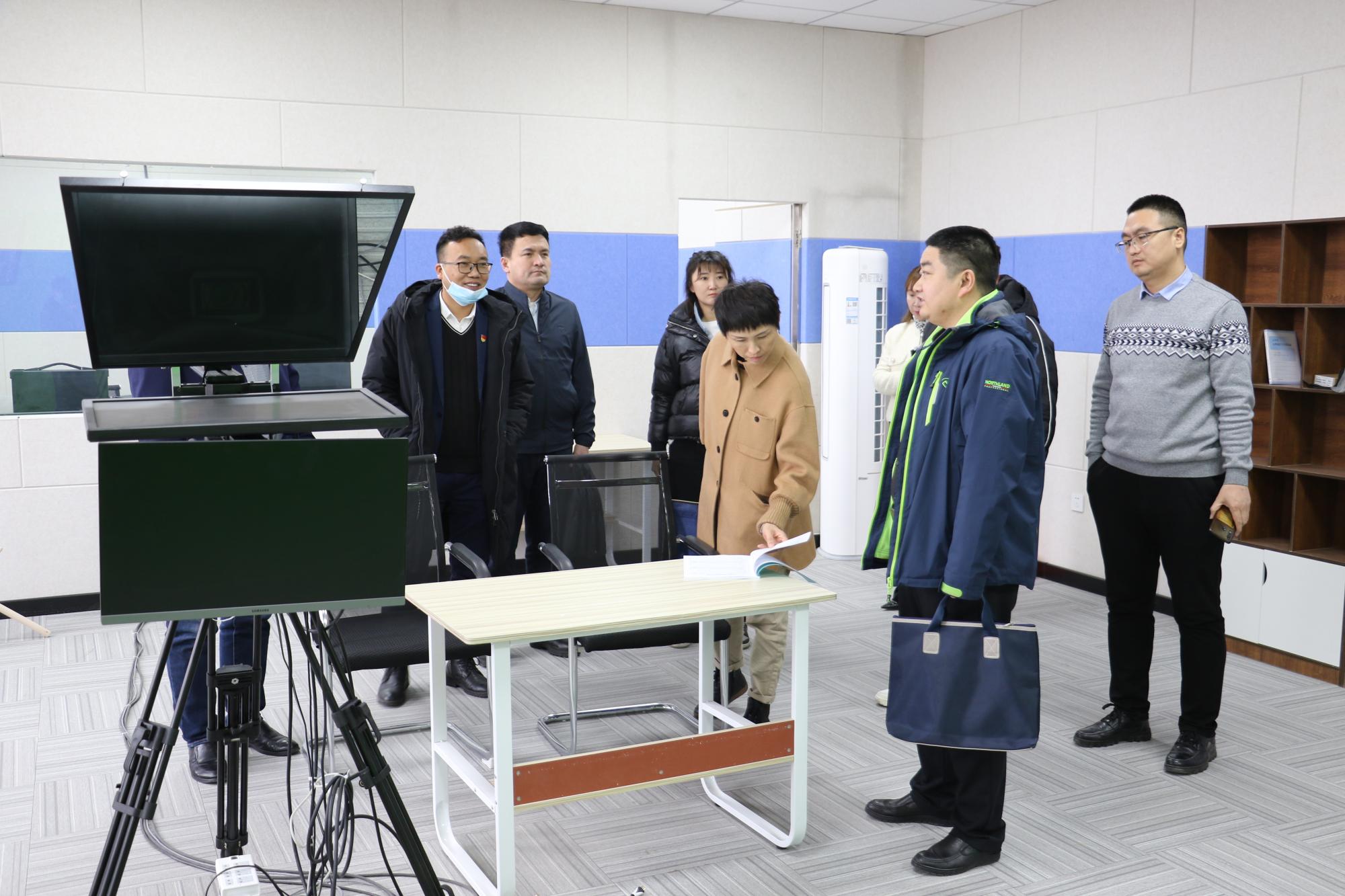 会后,夏龙江一行参观了学院产教融合楼录播室,实地了解了学院培训课程录制等工作。