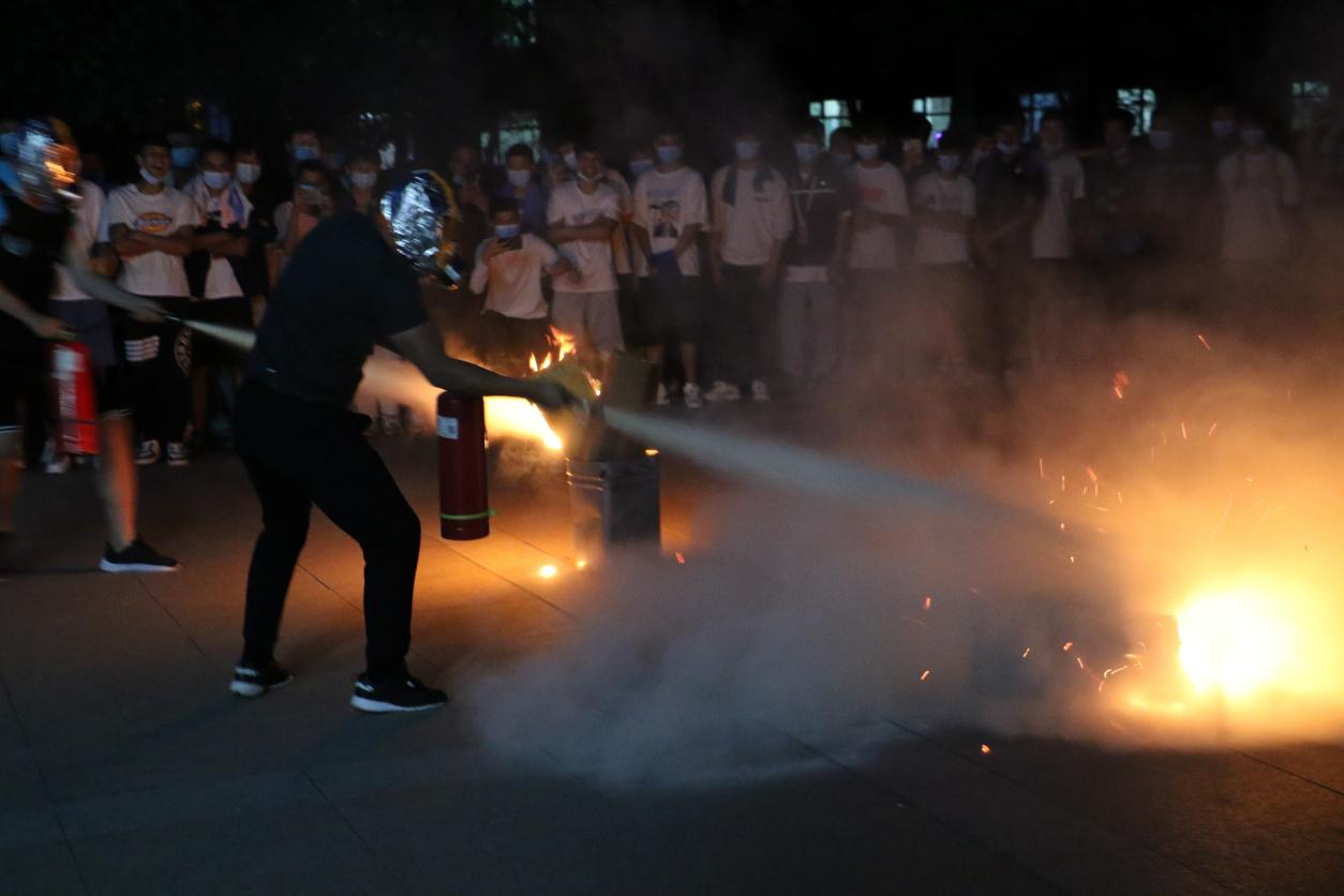 演练结束后,学院保卫处陈有利老师给大家科普了防火防灾的重要性,演示了灭火器的正确使用方法,带领学生及公寓管理员现场灭火。