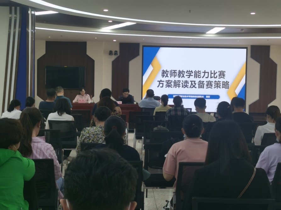 为提升教师队伍教学能力,示范引领教育教学改革发展,6月1日下午,在产教融合楼创新创业基地,浙江交通职业技术援疆干部、我院教务处副处长陈哲为全院教师作了 《教师教学能力比赛方案解读及备赛策略》专题讲座。