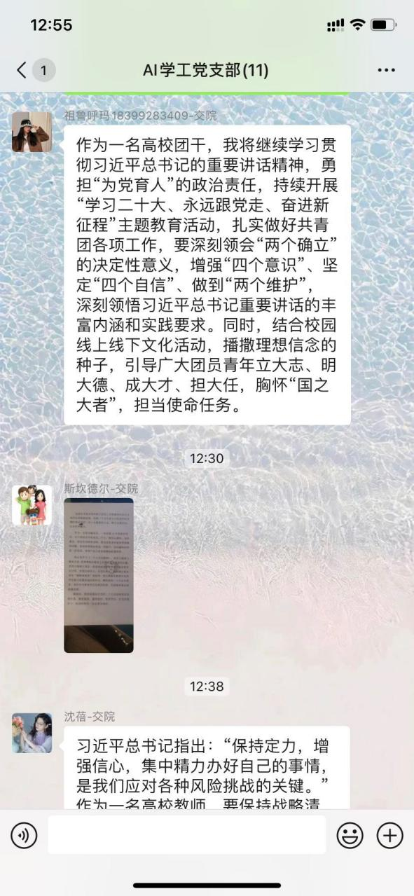 人工智能工程学院智交D203班的齐泽学生说道:“今日观看了党的二十大会议直播,深有体会。作为新时代的青年人,又是一名中共预备党员,出生在祖国快速进步的新时代,也见证了两个一百年计划的实现,我们是幸运的一代,也是重要的一代,我们要用自己的力量帮助祖国顺利完成建设社会主义现代化强国,听党话,跟党走!”