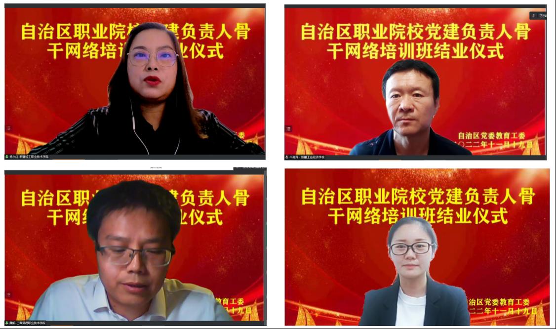 11月19日下午,2022年自治区职业院校党建负责人骨干网络培训班圆满结业。新疆交通职业技术学院院长何朴主持结业仪式,自治区党委教育工委职业教育工作处处长宁锐出席仪式并讲话。