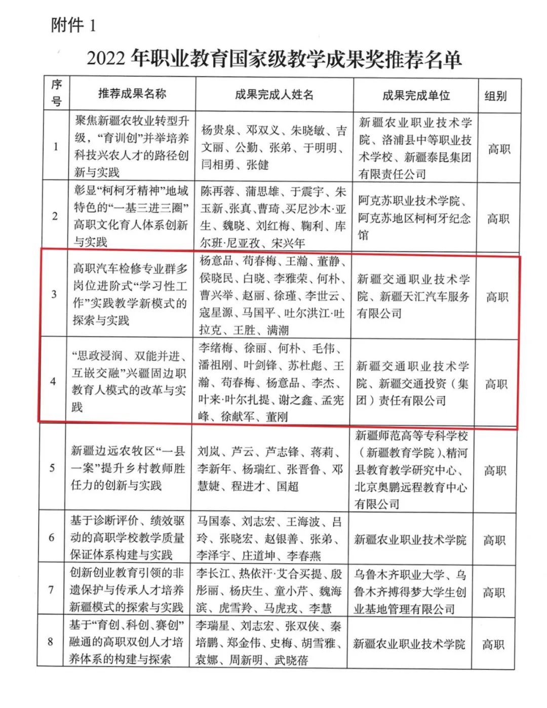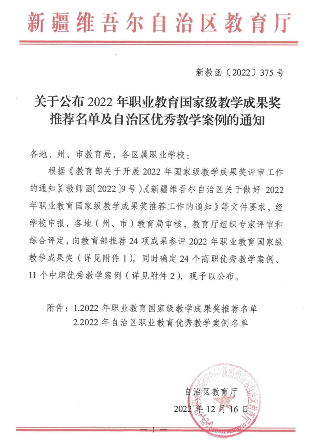 本次自治区推荐学院2个项目参评国家级教学成果奖,标志着学院在深化教育教学改革、创新人才培养模式、提升教育教学质量等方面取得了良好的成绩,获得了认可,学院将深入总结经验,继续深化探索实践,勇于开拓创新,再创佳绩。