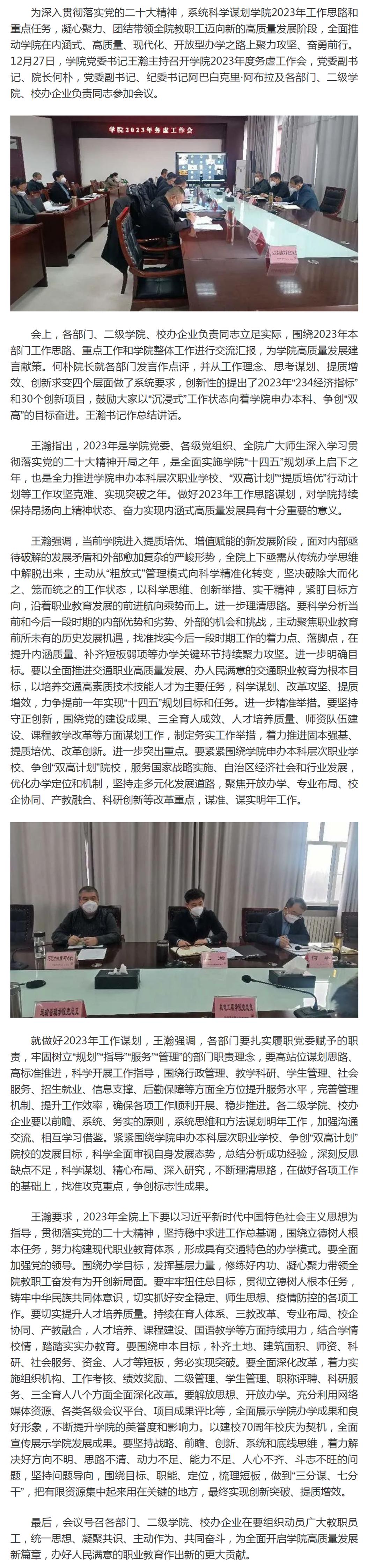 科学分析 明晰方向 主动谋划 创新提升——学院召开谋划2023年高质量发展务虚会