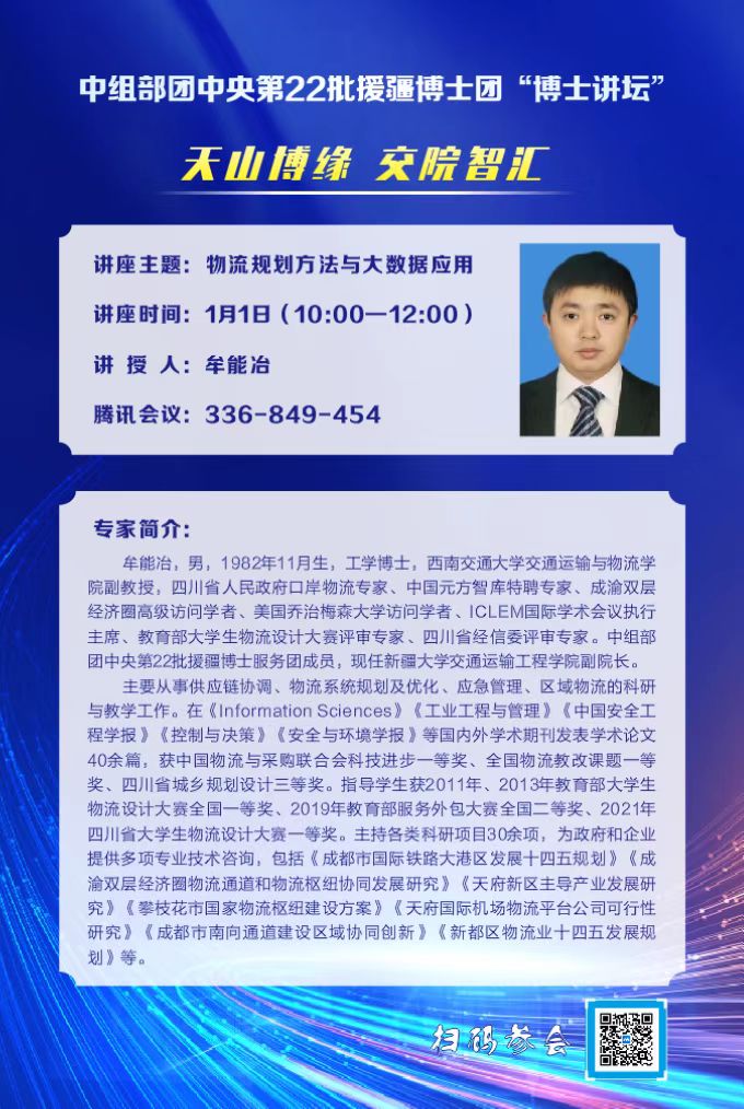牟能冶,工学博士,西南交通大学交通运输与物流学院副教授、四川省人民政府口岸物流专家、中国元方智库特聘专家,现任新疆大学交通运输工程学院副院长。