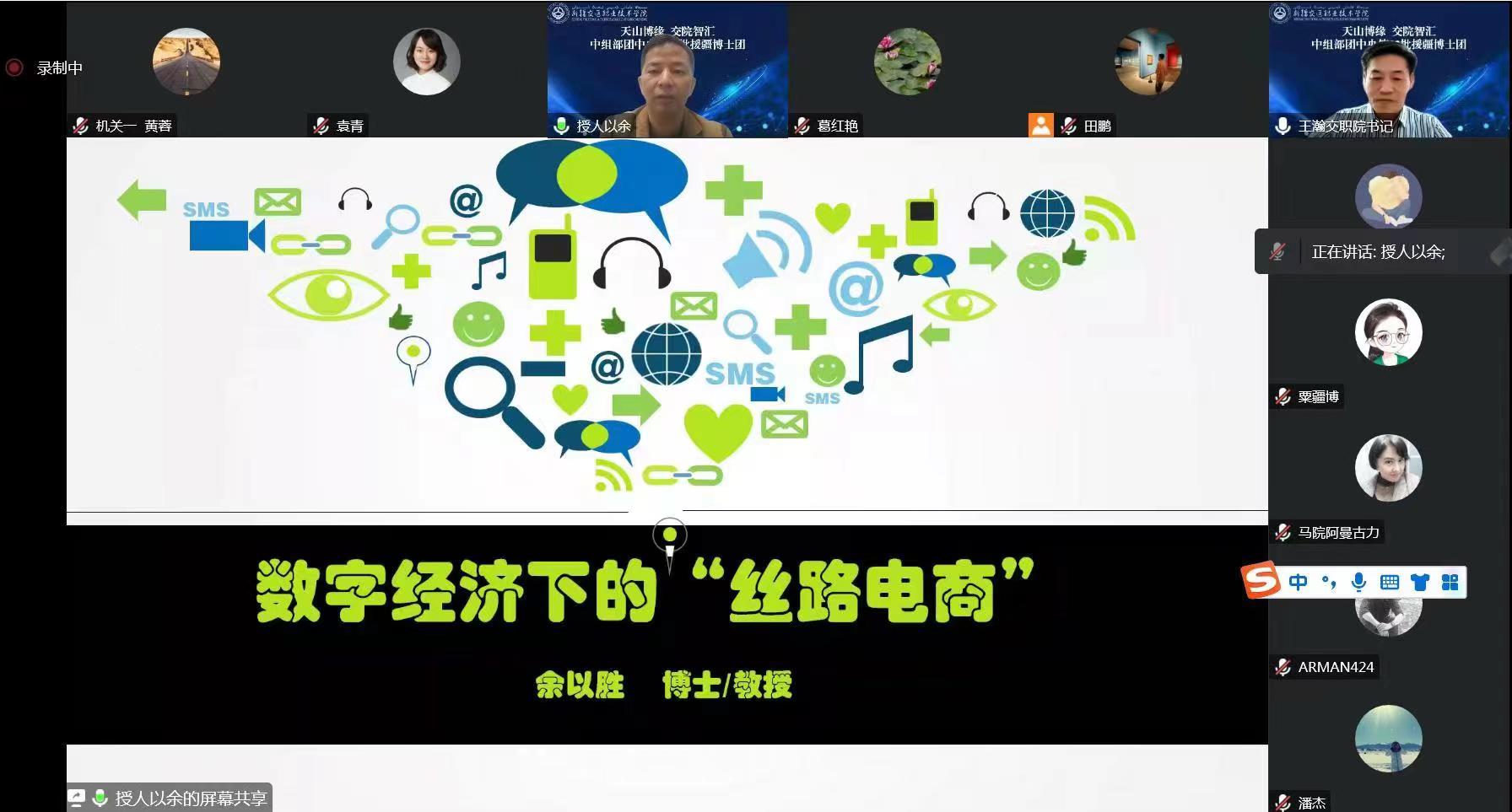 为深入贯彻落实党的二十大报告提出的对加快建设数字中国、加快发展数字经济的战略部署,顺应时代发展趋势,强化相关课程建设,1月7日上午,“天山博缘 交院智汇”中组部团中央第22批援疆博士团团长余以胜教授,为学院师生带来了一场精彩的讲座。