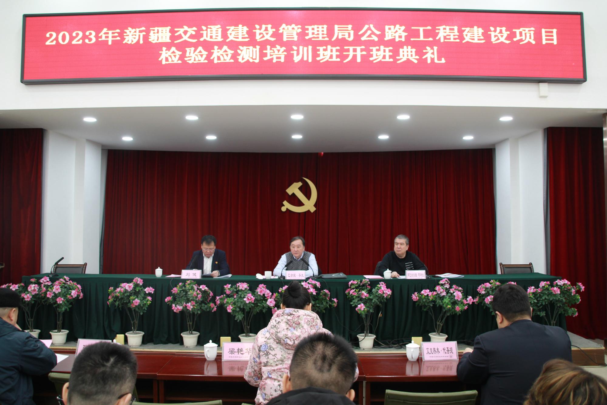 自治区交通建设管理局质量总监巴合提·吾先出席开班仪式并讲话,新疆交通职业技术学院党委副书记、纪委书记阿巴白克里·阿布拉致欢迎词,新疆交通科学研究院有限责任公司党委委员、副总经理、干旱荒漠区公路工程技术交通运输行业重点实验室主任刘健主持开班仪式。