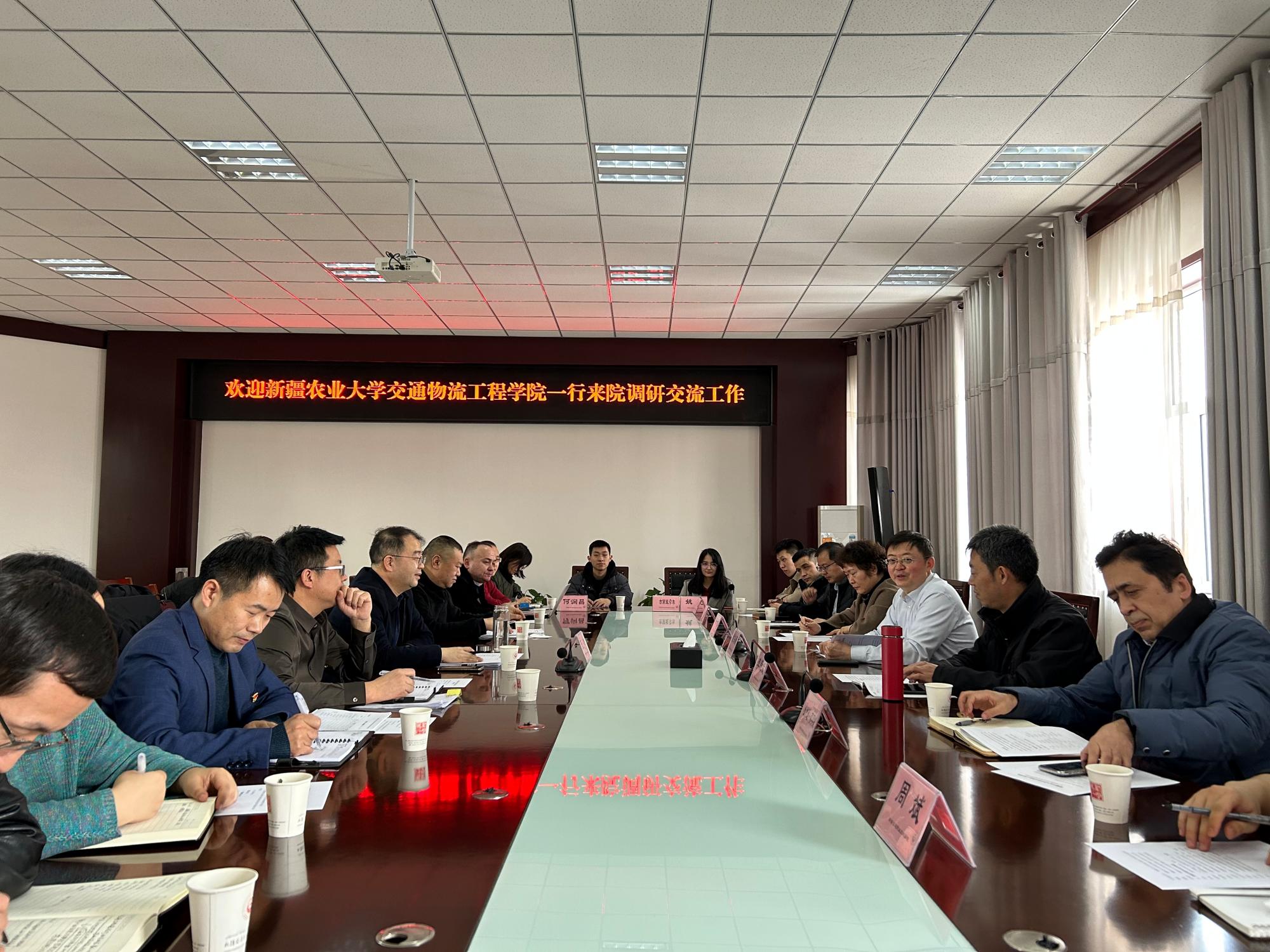 2月28日,新疆农业大学交通与物流工程学院院长谢海巍一行13人来我院交流调研实训基地建设工作。学院党委副书记、院长何朴出席并主持会议。