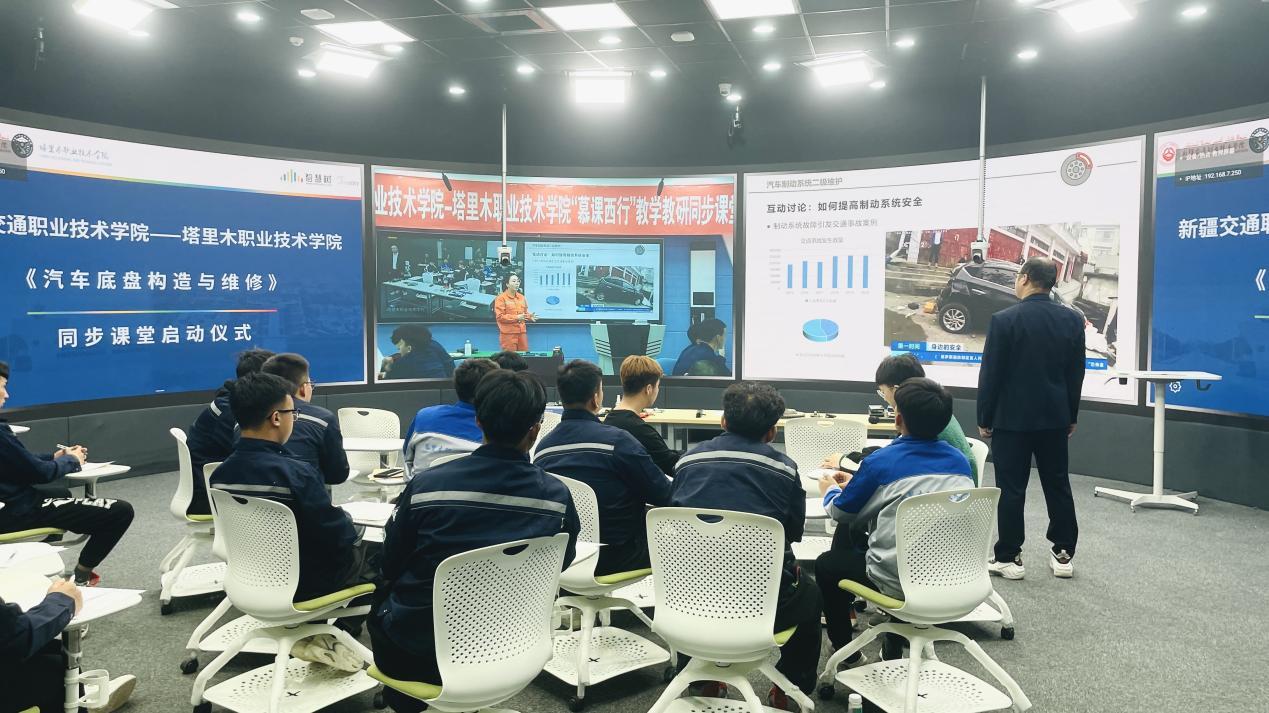 仪式上,确定了汽车工程学院加克▪乌云才次克副教授负责的《汽车底盘构造与维修》作为我院与疆内职业院校同步课堂的首门课程。