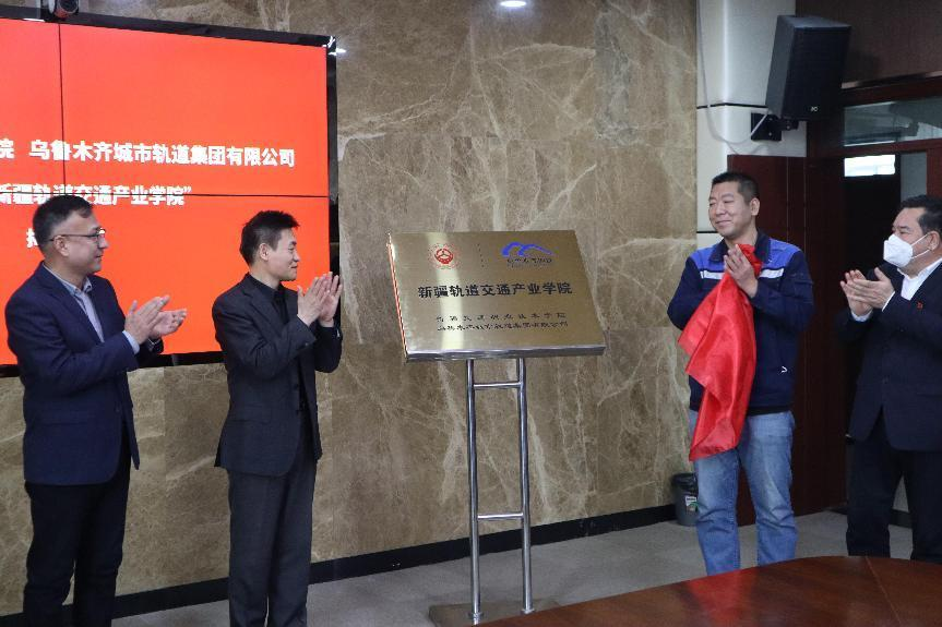 在热烈的掌声中,校企双方签署合作协议,并为“新疆轨道交通产业学院”揭牌。校企双方将以此次合作办学为新的开端,依托各自资源优势,深化合作领域,共同构建轨道交通行业人才培养新高地,实现校企共赢发展。