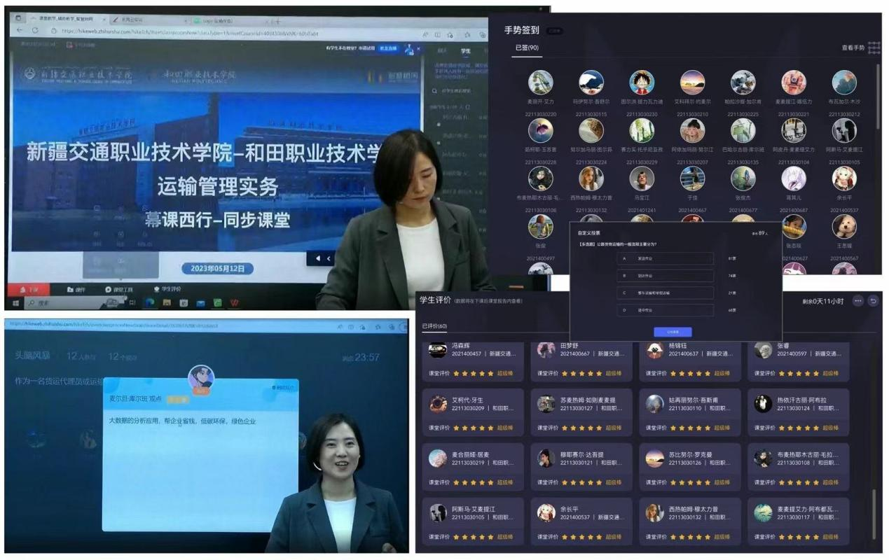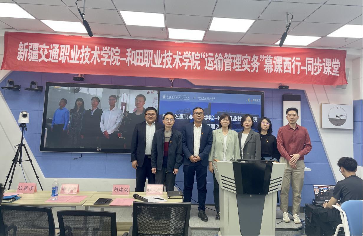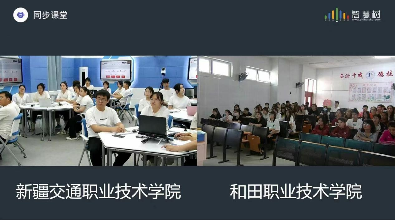 和田职业技术学院经济管理系援疆教授姜波及经济管理系教师团队、智慧树副总裁王健、自治区总经理郭俊杰、国家级职业教育教师教学创新团队(现代物流与供应链)课程团队、新疆交通职业技术学院领导、二级学院相关领导及两校师生代表共100人共同参加了此次同步课堂。