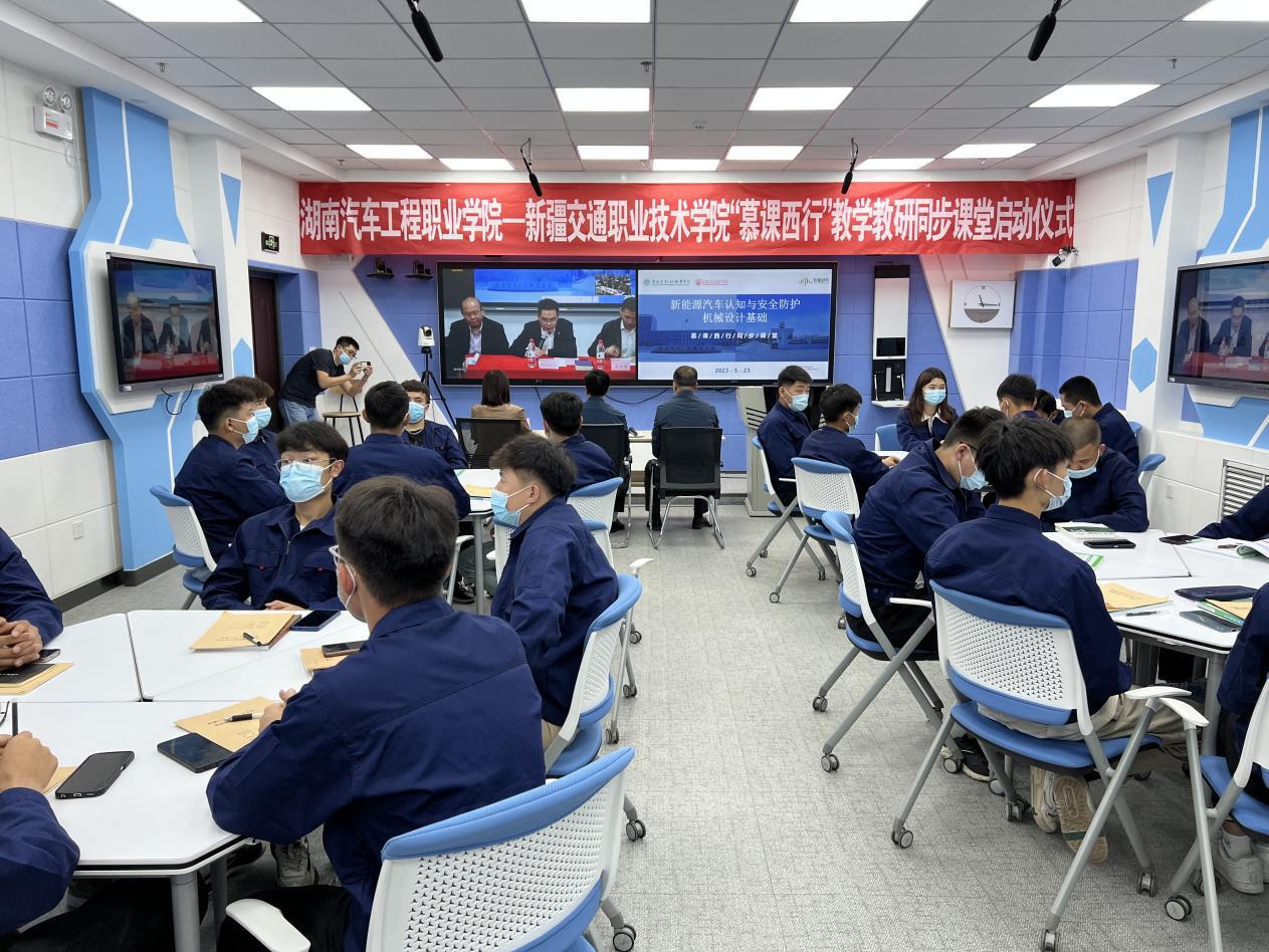 会后,来自湖南汽车工程职业学院的欧弘飞与童大权老师分别开展了《新能源汽车认知与安全防护》《机械设计基础》课程的授课,在同步课堂平台进行线上线下的同步学习和实时互动。课上学们认真听讲,积极提问,踊跃回答问题,课堂气氛热烈。两位教师课堂内容丰富、思路清晰、深入浅出的讲解令同学们难忘。