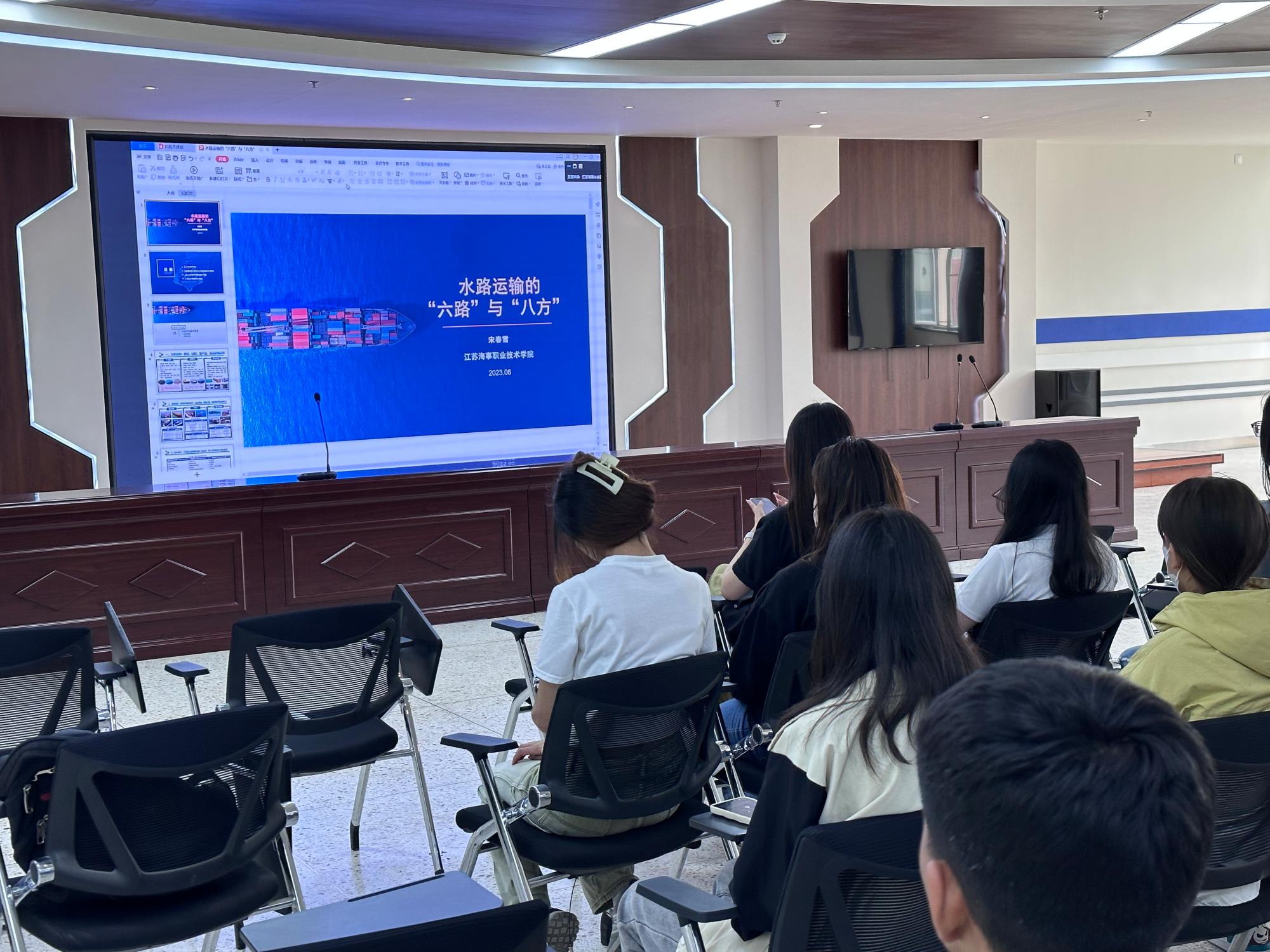 宋春雪作了题为《水路运输的“六路”与“八方”》的专题讲座,讲座内容包含水路运输市场基本要素、国际航运市场发展现状与主要趋势、航运产业链解析、港航安全管理体系实践探索四个部分。宋老师的讲座紧扣当今国际水运市场前沿,契合国际航运市场发展趋势,重点介绍了国际航运市场安全管理体系。通过讲解拓宽了学生的专业视野,丰富了学生的专业知识储备,提高了学生的专业认知。