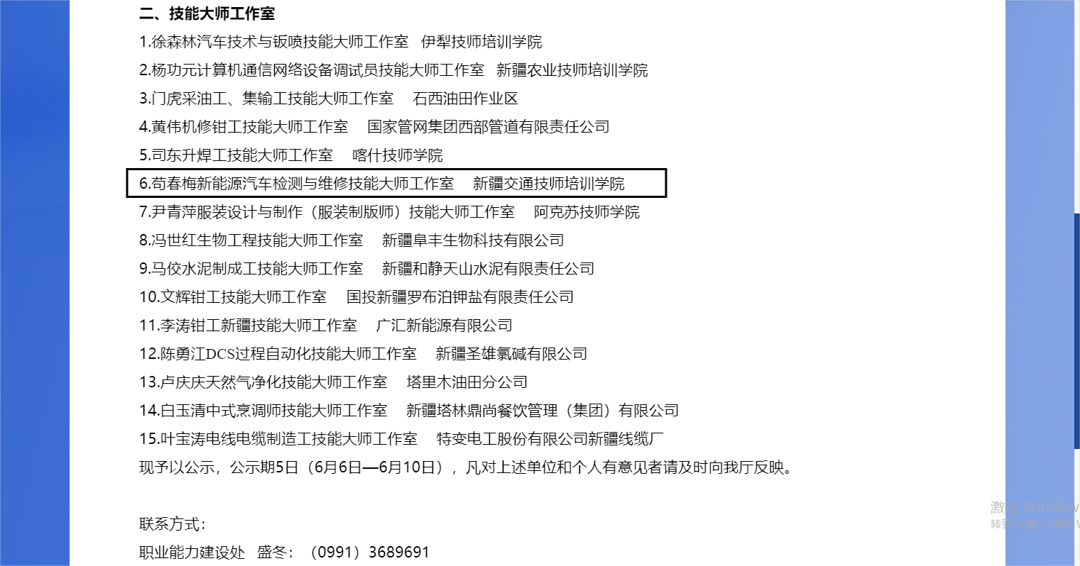 近日,自治区人社厅公布了《关于2023年自治区级高技能人才培训基地和技能大师工作室建设项目评审结果的公示》,学院获批2023年自治区高技能人才基地、汽车工程学院苟春梅新能源汽车检测与维修技能大师工作室入选建设项目。
