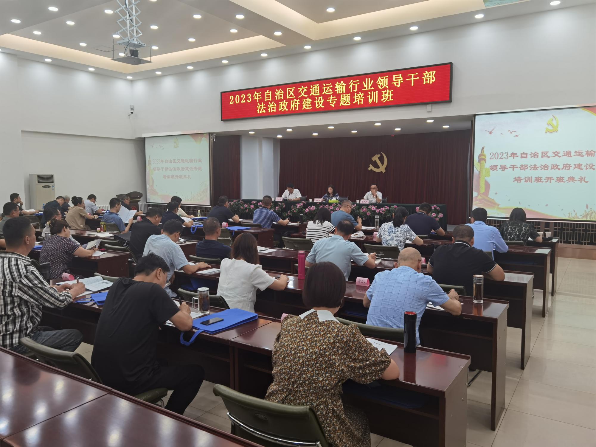 8月21日上午,由自治区交通运输厅党委主办、新疆交通职业技术学院承办的2023年自治区交通运输行业领导干部法治政府建设专题培训班在学院正式开班。