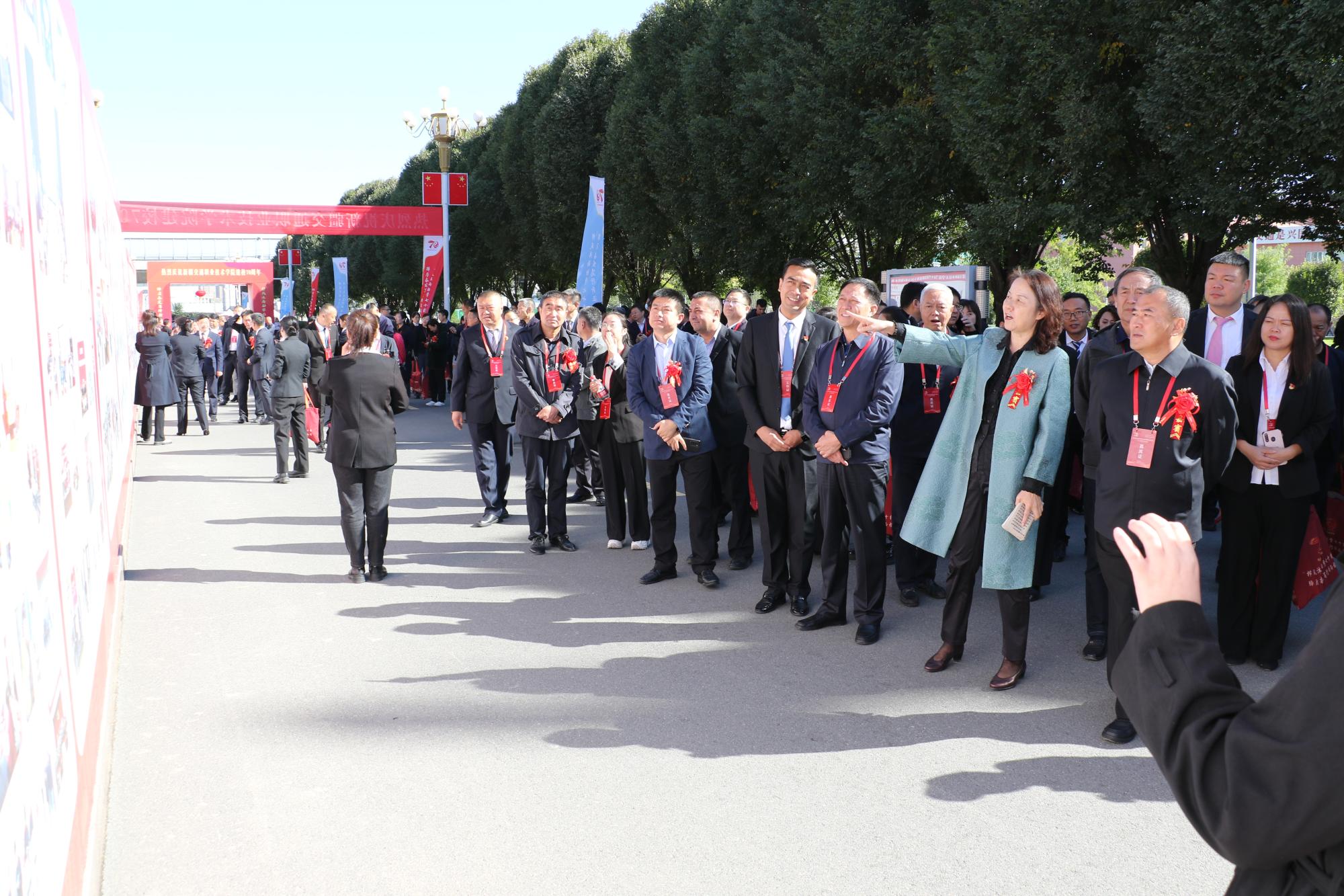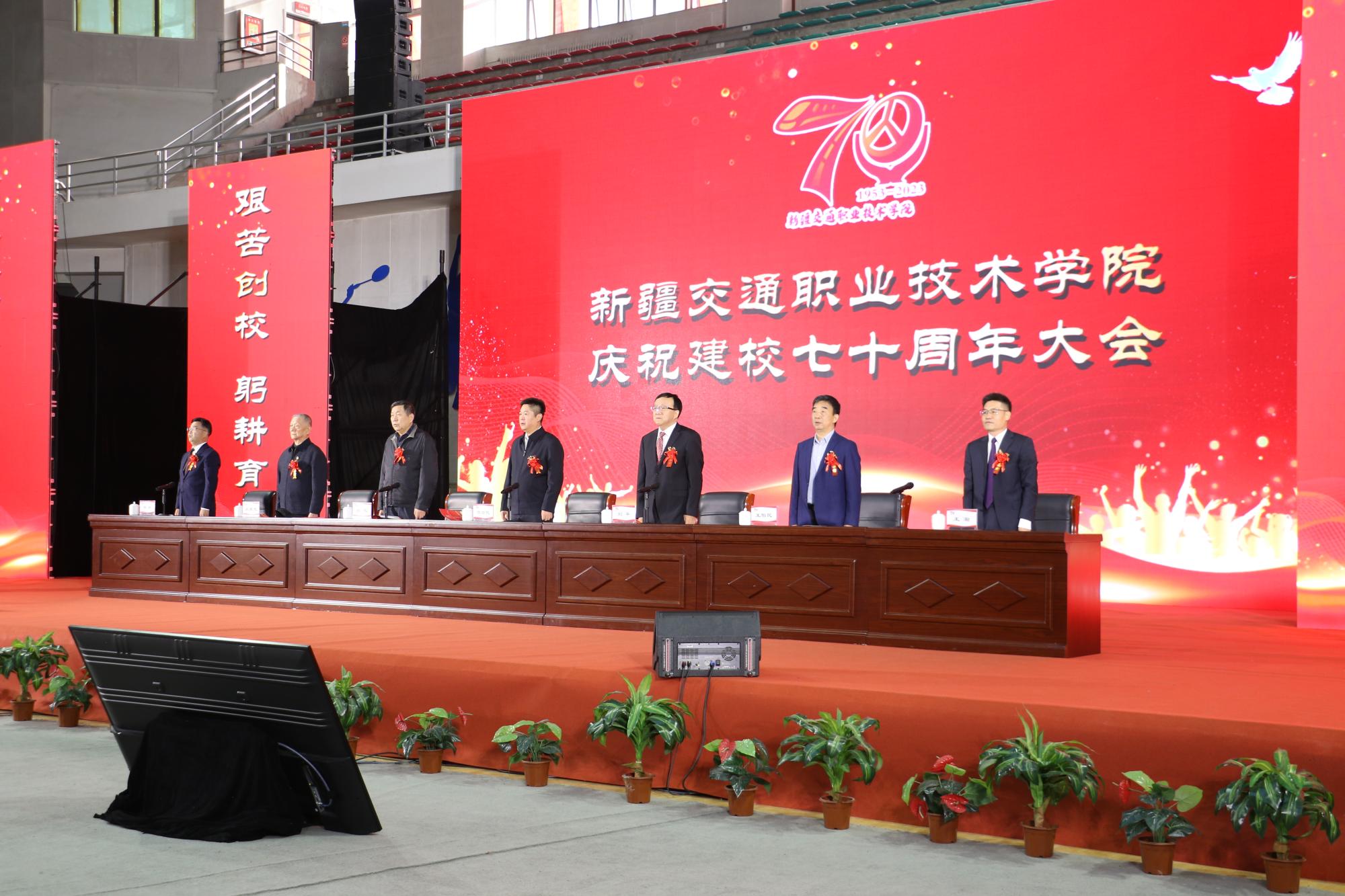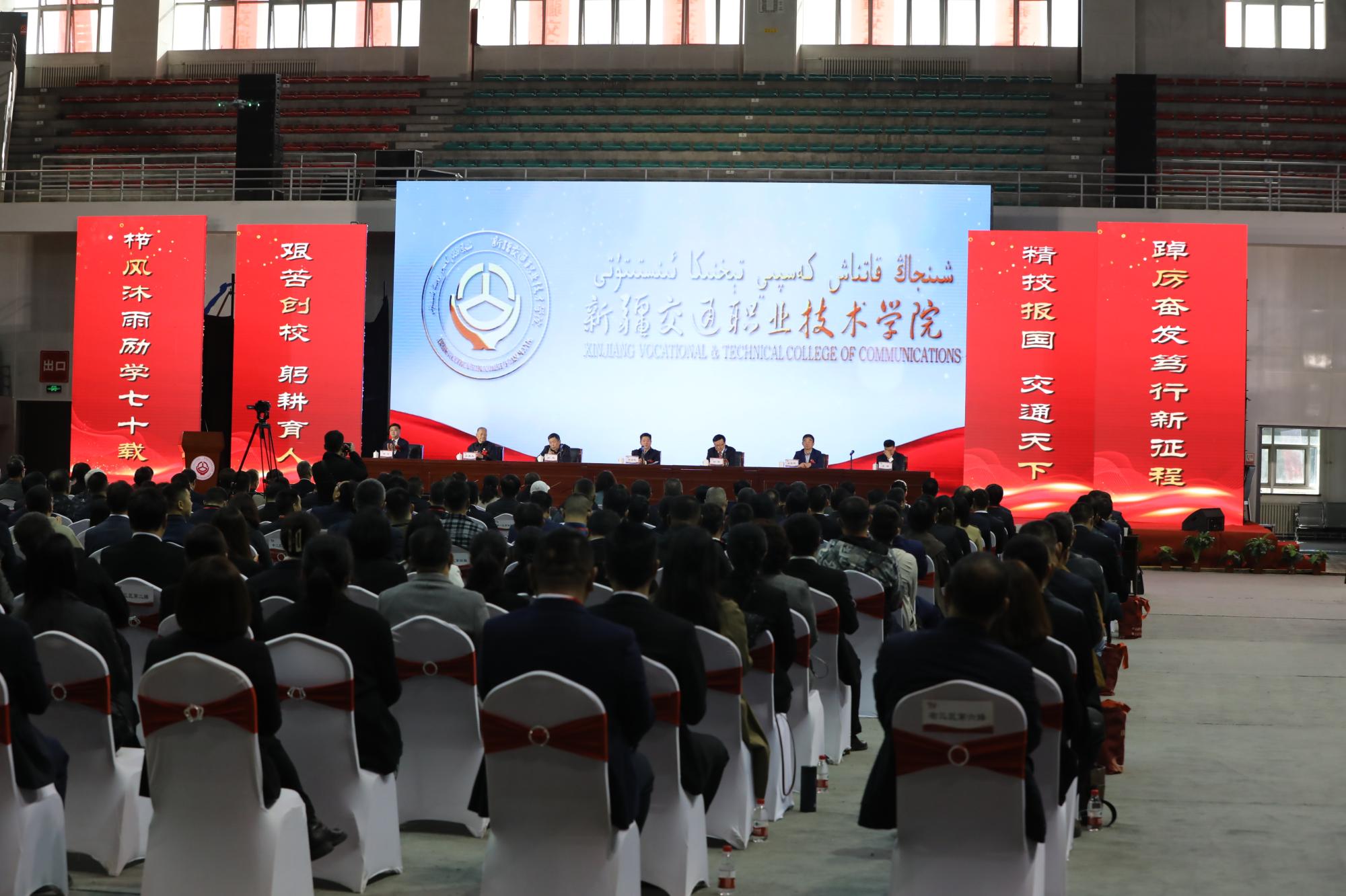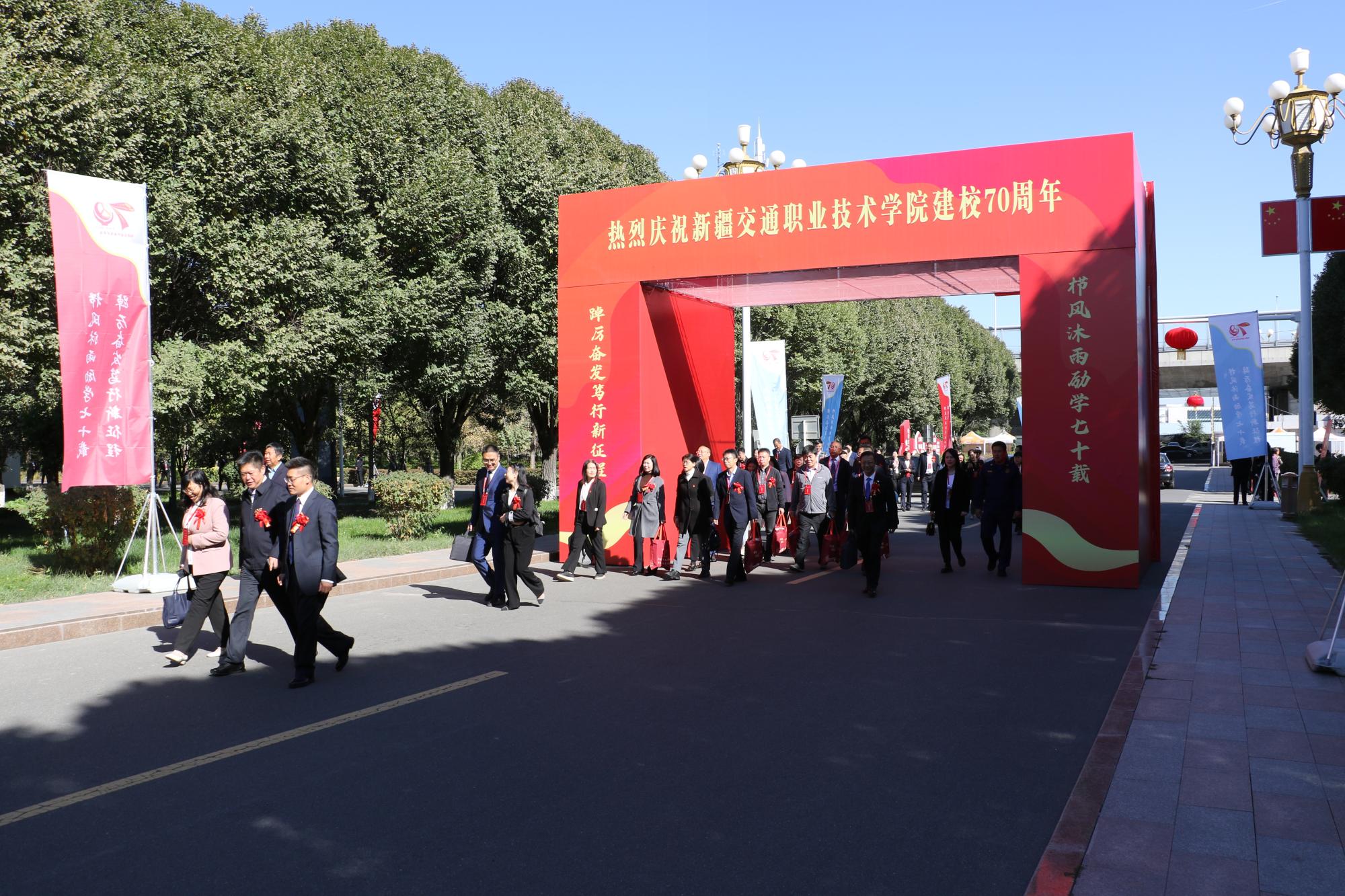 来自浙江交通职业技术学院、北京交通运输职业学院等22所全国交通运输职业教育教学指导委员会对口帮扶学院的校领导及援疆教师代表、新疆大学、新疆农业职业技术学院等15所疆内兄弟院校领导,机场集团、乌鲁木齐铁路局、新疆交投集团、乌市城轨集团等20余家校企合作企业代表、学校老领导、老同志代表、校友代表及在校师生4000余人在硕果累累的秋季,生机盎然的校园同庆华诞。