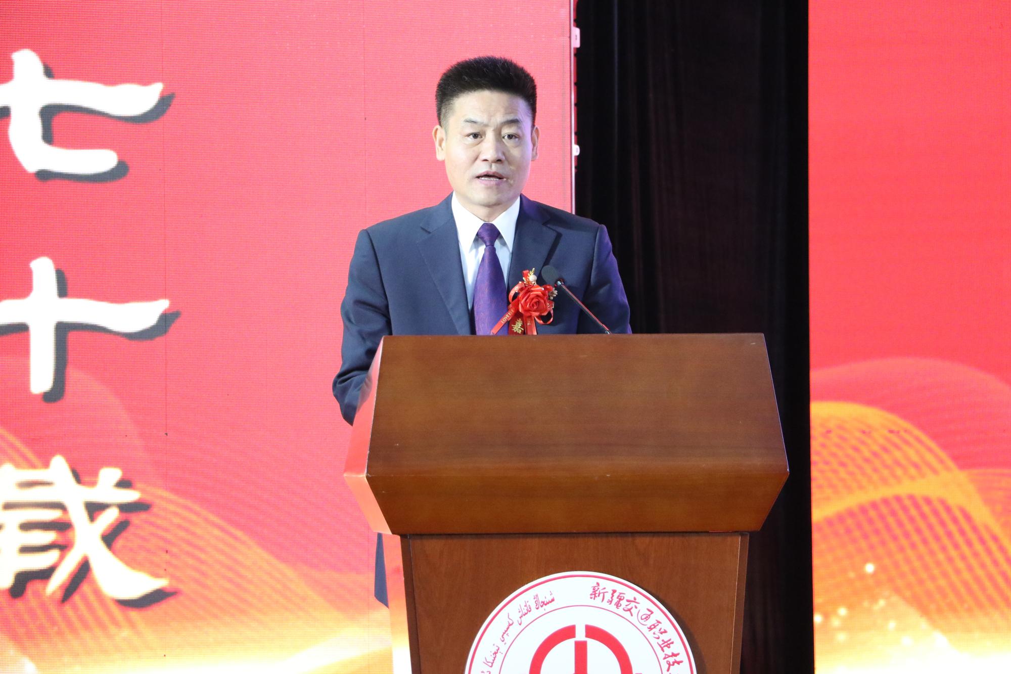 自治区党委教育工委副书记张士民致辞中表示希望学院以建校70周年校庆为新的起点,坚守“为党育人、为国育才”初心,勇担立德树人使命,不断深化综合改革,突出办学特色,提高教育质量,主动服务教育强国、科技强国、人才强国建设,培养造就更多德才兼备的高素质人才;希望全院教师以德立身、以德立学、以德施教,当好学生健康成长的指导者和引路人;希望广大学子不负韶华、奋发图强,用实际行动践行“强国有我”的铮铮誓言,努力成长为堪当民族复兴重任的时代新人,为奋力谱写新疆高质量发展新篇章作出新的更大贡献。