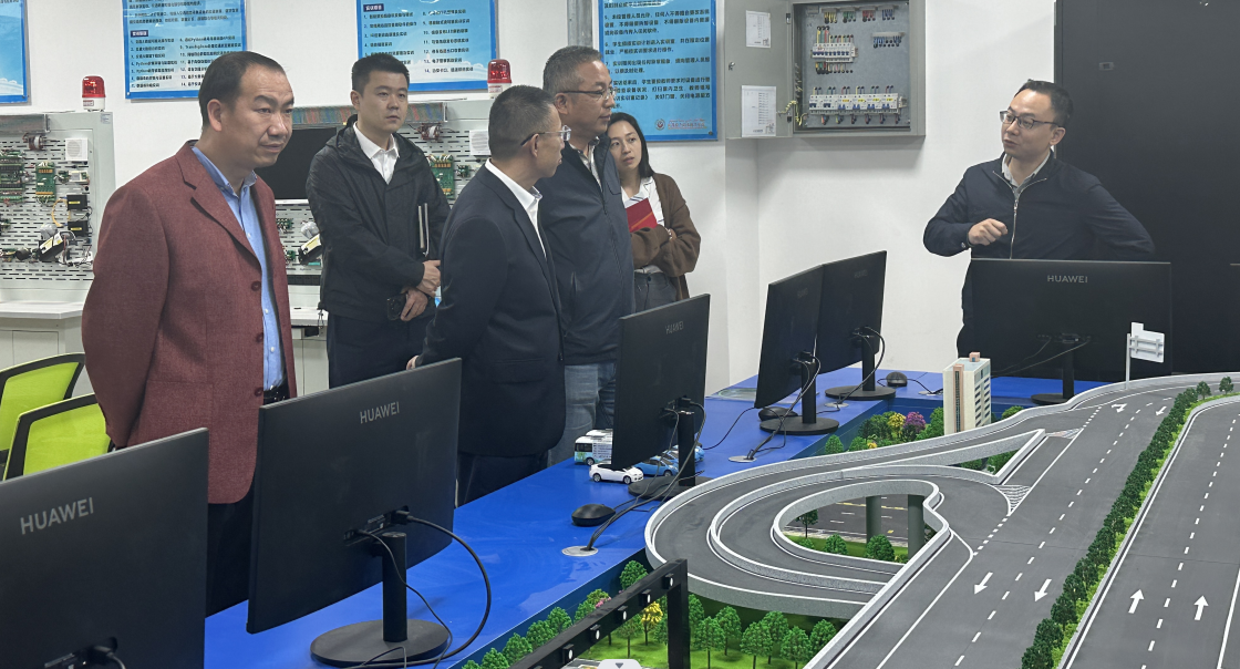 在学院党委委员、副院长叶剑锋陪同下,新疆机场集团公司一行人参观了华为ICT学院产教融合文化走廊、华为ICT学院产教融合展厅、智慧交通产教融合实训基地的车路协同实训室。叶剑峰表示,车路协同实训室是我院在人工智能时代落实教学与产业与时俱进,实训与岗位无缝衔接,引领智慧交通产业升级的重点实训室。华为ICT学院围绕区域经济特色,夯实数字化建设专业岗位基础通用能力,强化基于岗位能力证书的岗位技能实训,打造集院校数字人才培养、全民数字技能提升、企业数字化赋能和产业数字化服务为一体的综合人才服务体系。