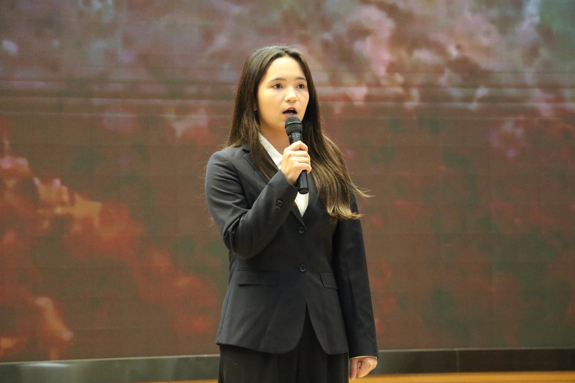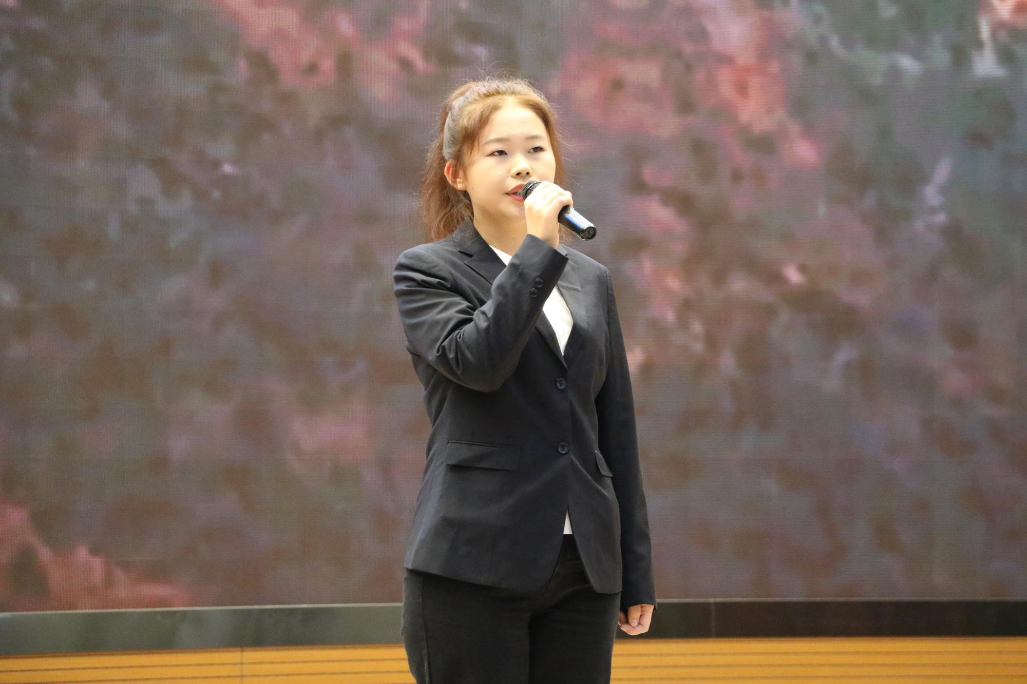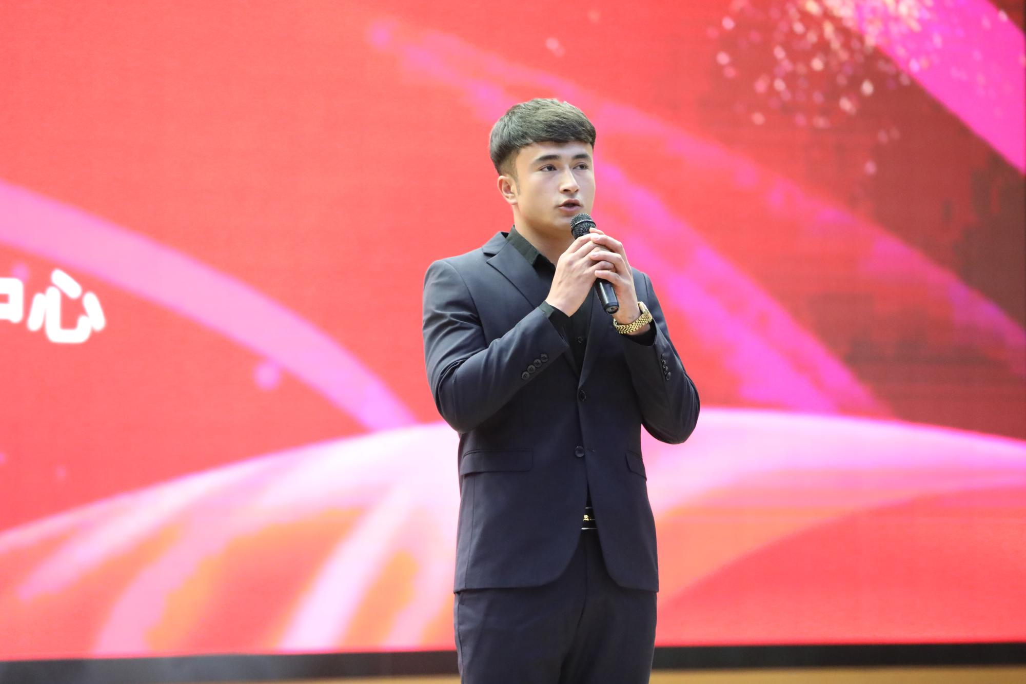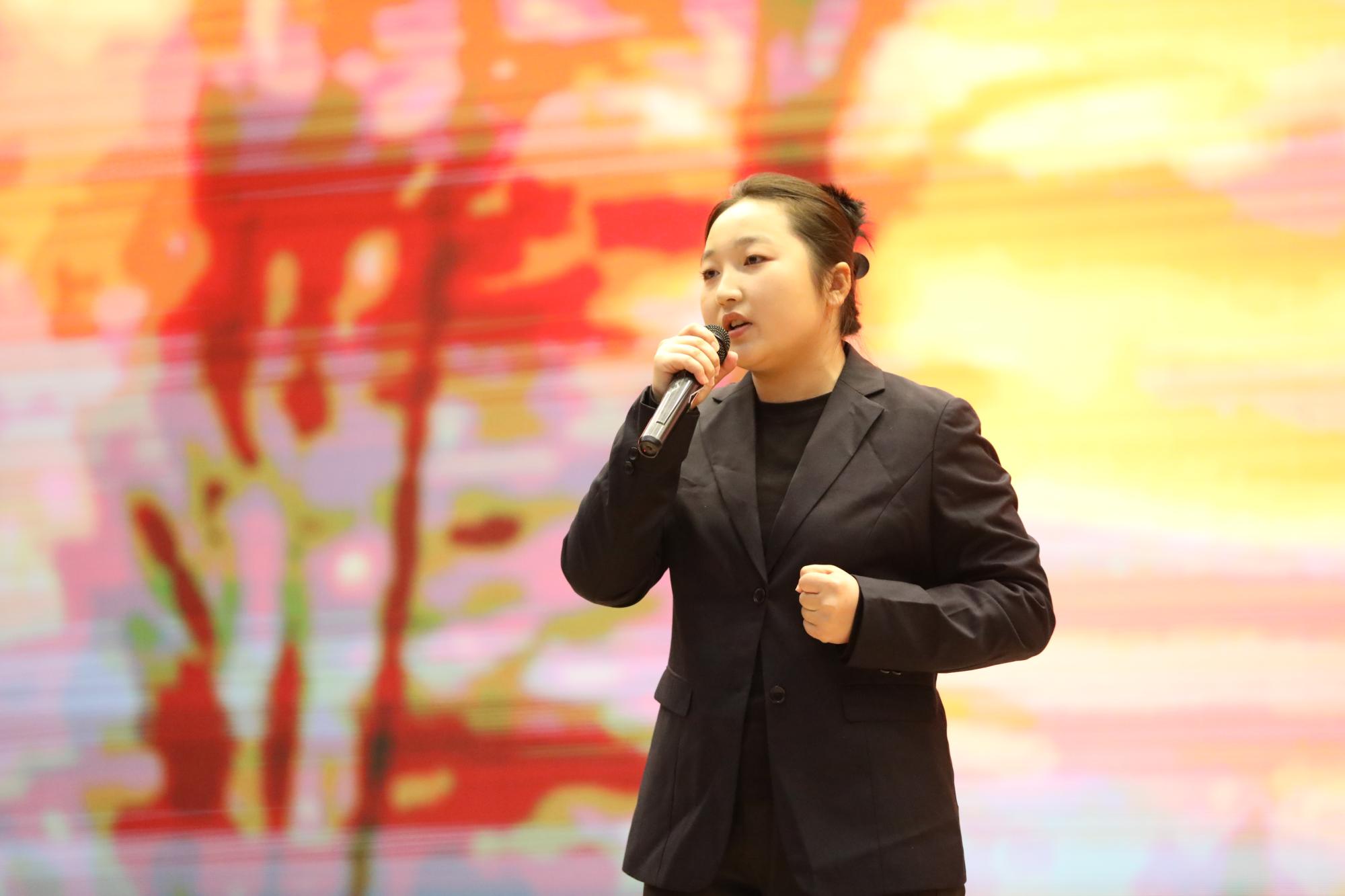 人工智能工程学院信息D221班艾克旦·阿地力同学以她那洪亮磅礴的声音展现了心中有了“可为”的信仰,脚下才会有“有为”的无穷力量。