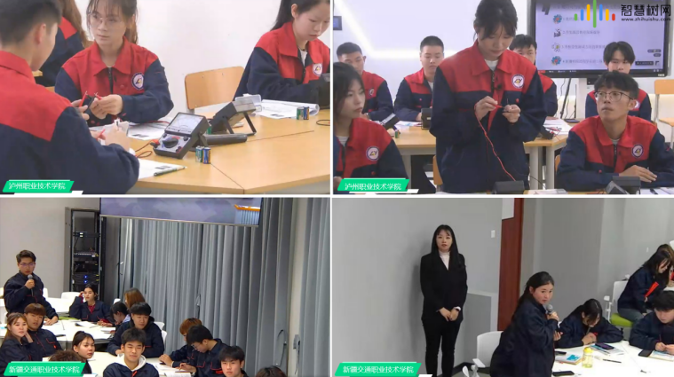 启动仪式结束后,泸州职业技术学院樊明哲副教授以“正负12V直流稳压电源的设计与实现”为教学主题,通过智慧树的“现场连线”“抢答提问”等教学功能,引导两地学生共同完成实训难点和课堂问题,并组织同学们积极讨论。尽管直播教室相隔千里,但丝毫不影响课堂热烈的氛围。