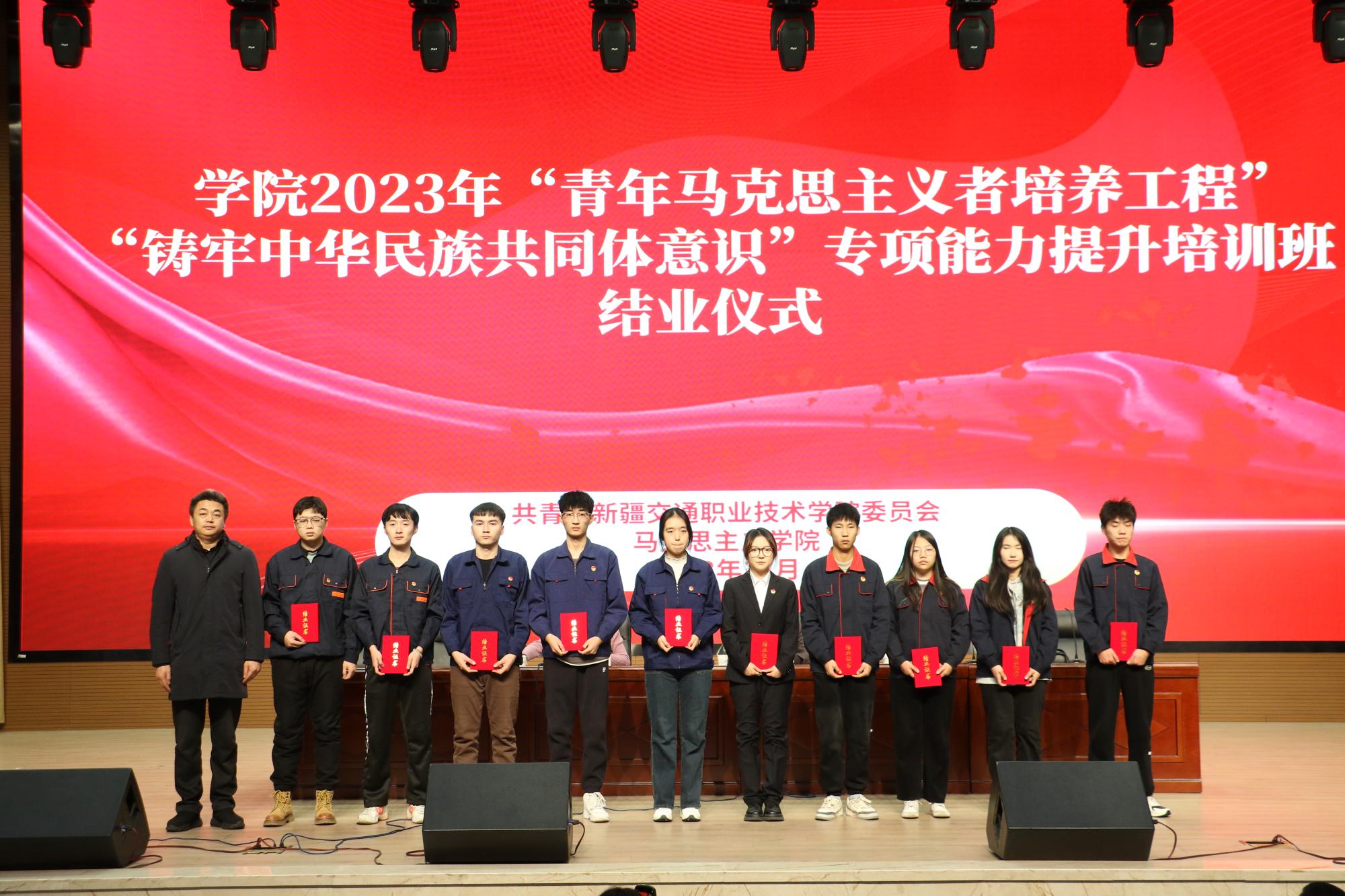 12月14日,学院2023年“青年马克思主义者培养工程”“铸牢中华民族共同体意识”专项能力提升培训班结业仪式在交院大礼堂举行,学院党委书记王瀚出席结业仪式。结业仪式由团委副书记张翾子主持。