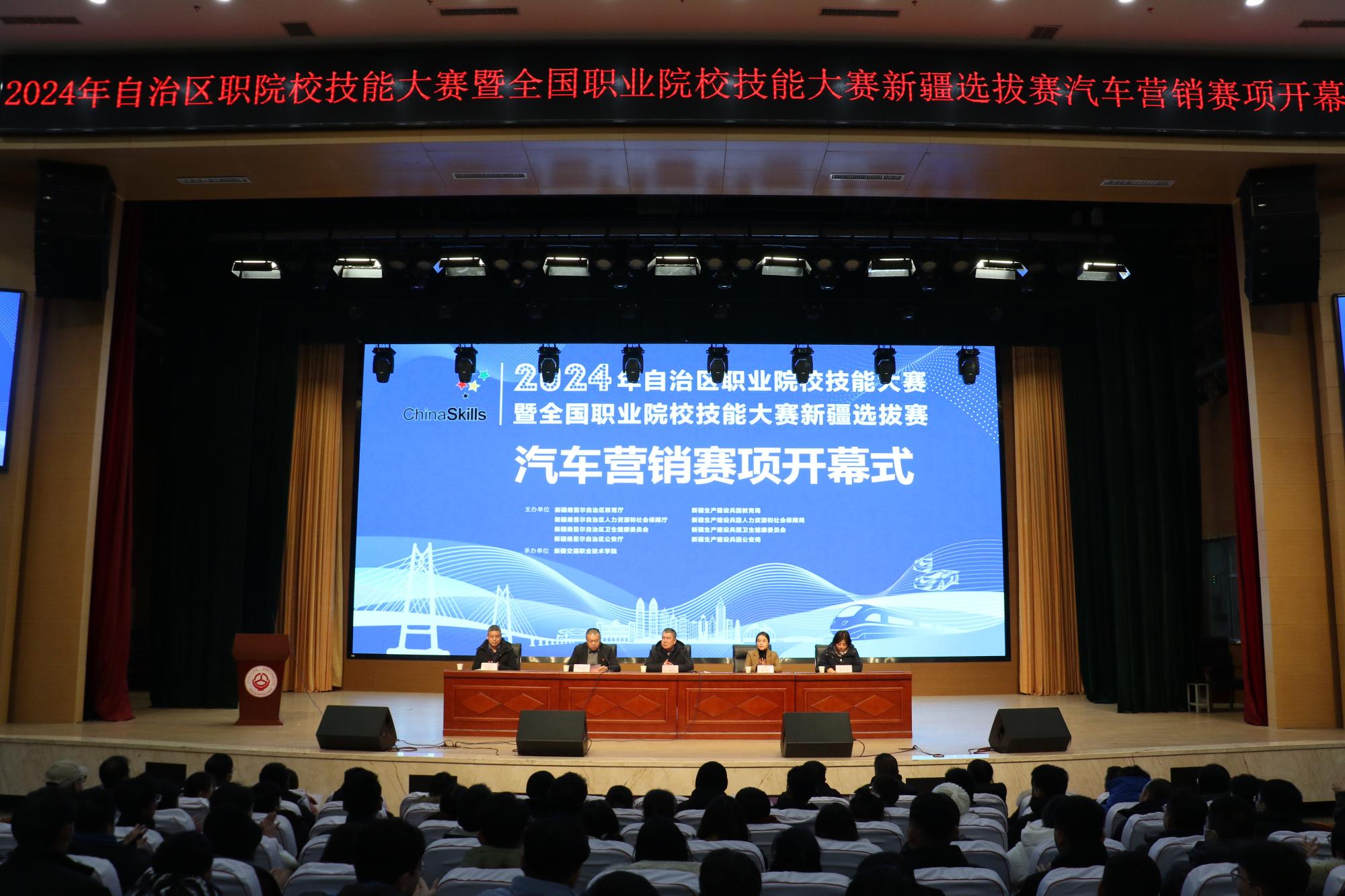 12月15日下午,2024年自治区职业院校技能大赛暨全国职业院校技能大赛新疆选拔赛汽车营销赛项在新疆交通职业技术学院产教融合楼大礼堂开幕。