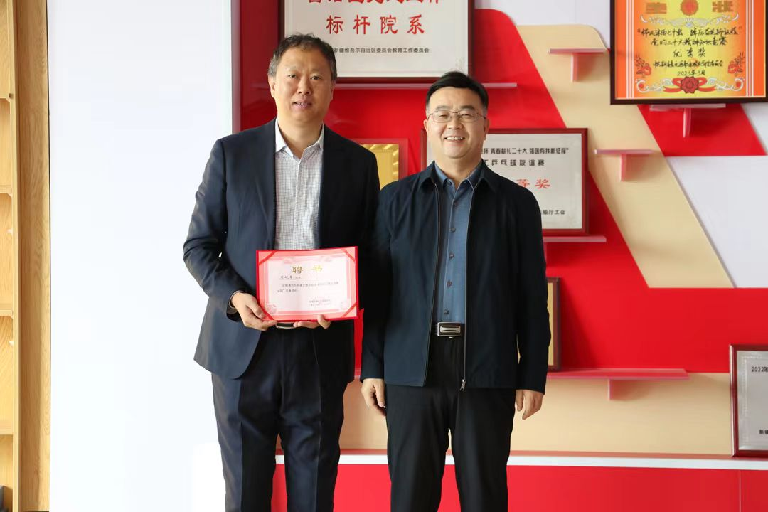 捐赠仪式上,新疆交通职业技术学院党委副书记、院长何朴与乌鲁木齐市傲立电梯有限公司签订了电梯教学实训设备捐赠协议,并向该公司颁发了“傲立电梯学院”名誉院长证书。